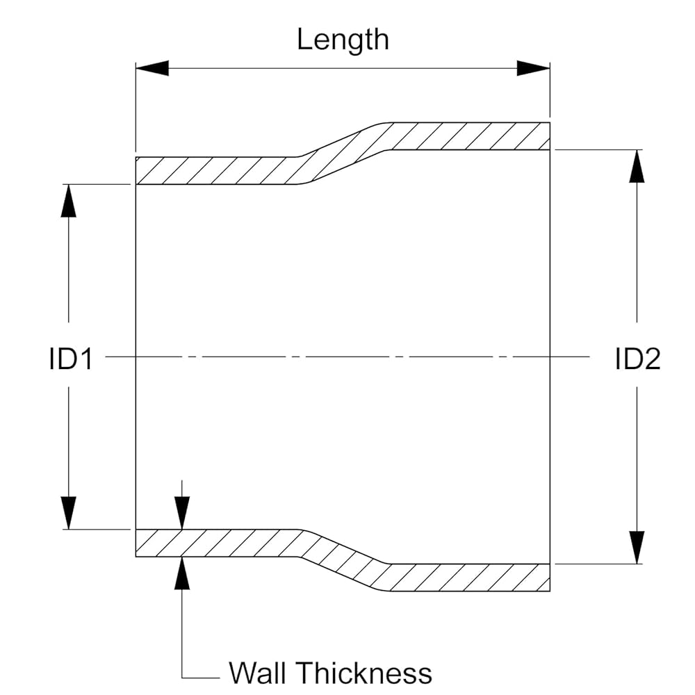 HPS black 1-1/4 inch - 1-3/4 inch (32mm - 45mm) ID with 4 inch Length high Temp 4-ply reinforced silicone Reducer coupler hose (maximum working pressure: 100 psi. Maximum temperature rating: 350F) meet and exceed SAEJ20 industry standards, ideal for heavy duty pressure connections and provides excellent resistance for high temperature applications. Wall thickness: 5mm. Temperature range: -65 degree F to +350 degree F (177 degree C). UV and ozone resistant. HPS performance silicone reducing transition coupling hose is designed and engineered to meet high performance requirements specified in various industry standards, such as automotive Racing industry, Turbo diesel pickup truck, heavy duty equipment and machine, custom cooling system, DIY Turbo intercooler piping fabrication, commercial trucking, buses and coaches, marine, military vehicles, aerospace, generators, agricultural tractors, and general construction. Silicone hose is not compatible with fuel or oil; however it is compatible with air, water and Anti-Freeze such as coolant.