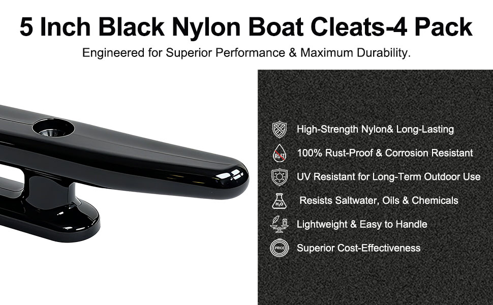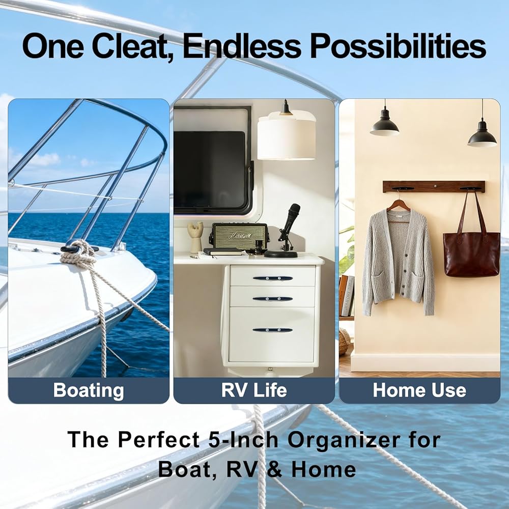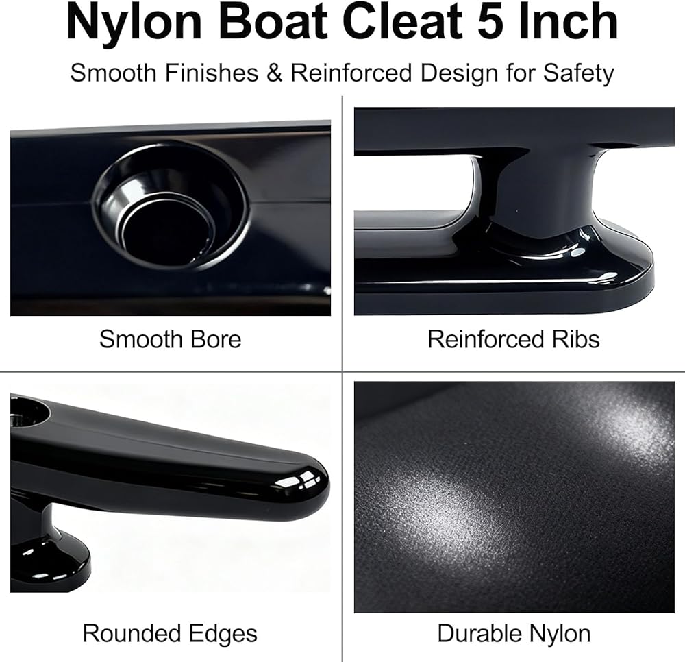 المواد: مادة صناعية متينة لدينا مقاس 12.7 سم مصنوعة من النايلون. وتتميز ببنية قوية تقاوم التآكل والصدأ، وتتحمل الظروف البحرية مثل الغمر في مياه البحر والبحيرات. مرابط الإرساء هذه للقوارب مقاس 5 بوصات / خطافات معطف القارب على الحائط، يتم تثبيتها بشكل موثوق وتثبت السفن حتى تحت توتر خطوط الإرساء أثناء عمليات الإرساء. (عادةً ما يدوم المربط الصارم المصنوع من النايلون نفسه الأجهزة في بيئات المياه المالحة.)