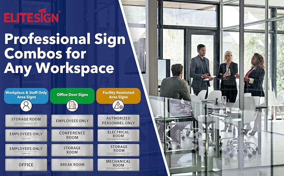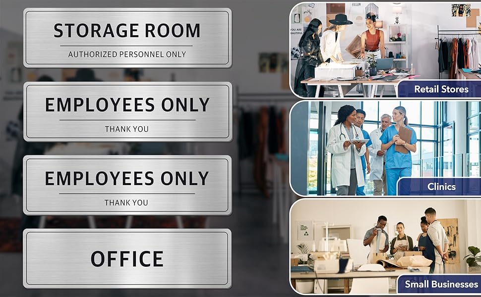 • 【مثالي لأماكن العمل المخصصة للموظفين فقط 】مثالي لأماكن العمل التي تحتاج إلى تحكم واضح في وصول الموظفين. تتضمن علامة الموظفين فقط × 2، وعلامة غرفة التخزين، وعلامة المكتب لفصل مناطق الموظفين عن الأماكن العامة في المكاتب والعيادات والغرف الخلفية للبيع بالتجزئة وشركات الخدمات.
