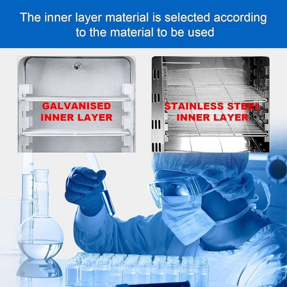 DIGITAL AIR DRYING OVEN:The experimental thermostat adopts an intelligent microcomputer temperature control instrument,which has functions such as timing,alarm,and temperature calibration.It can produce high-quality products in less time while increasing productivity.