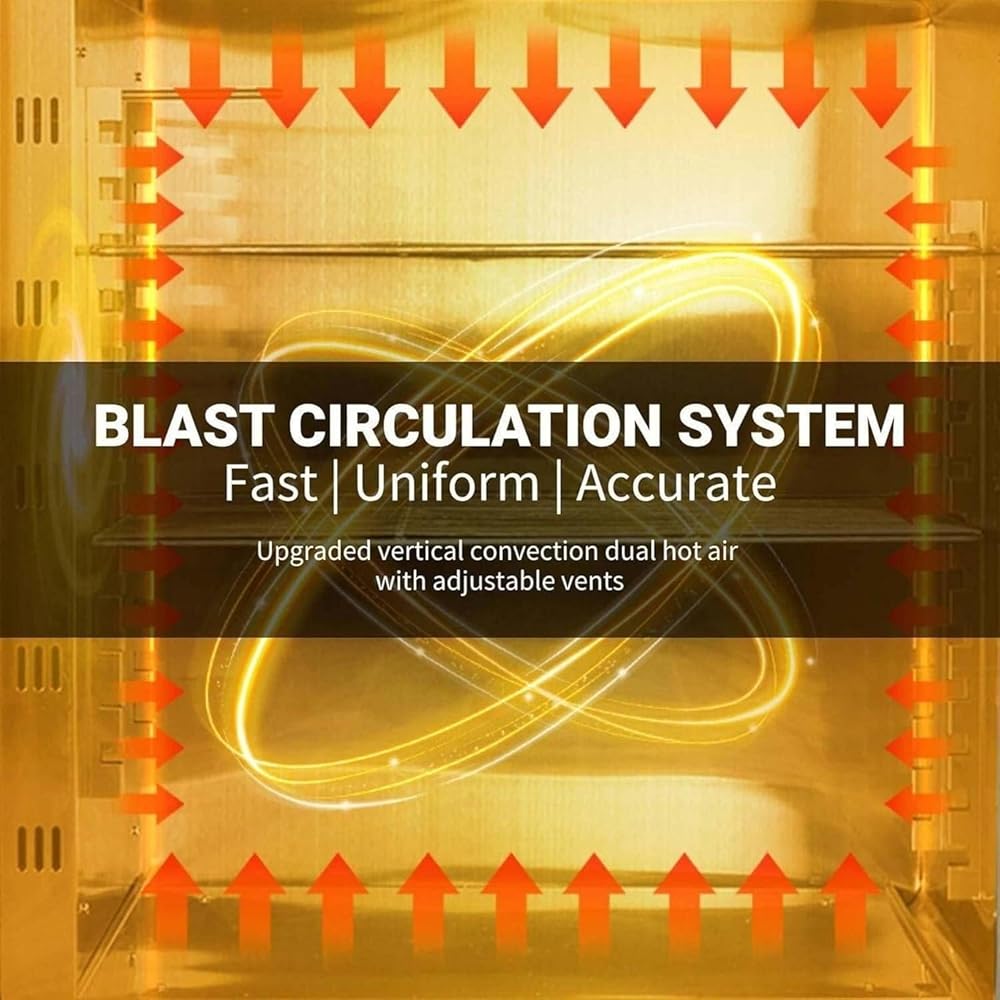 THOUGHTFUL DETAILS:Our oven comes with sealing strips and double-glazed windows for proper sealing and insulation.It is also equipped with a lockable door handle and thyristor power-off protection to ensure safe and long-term use.