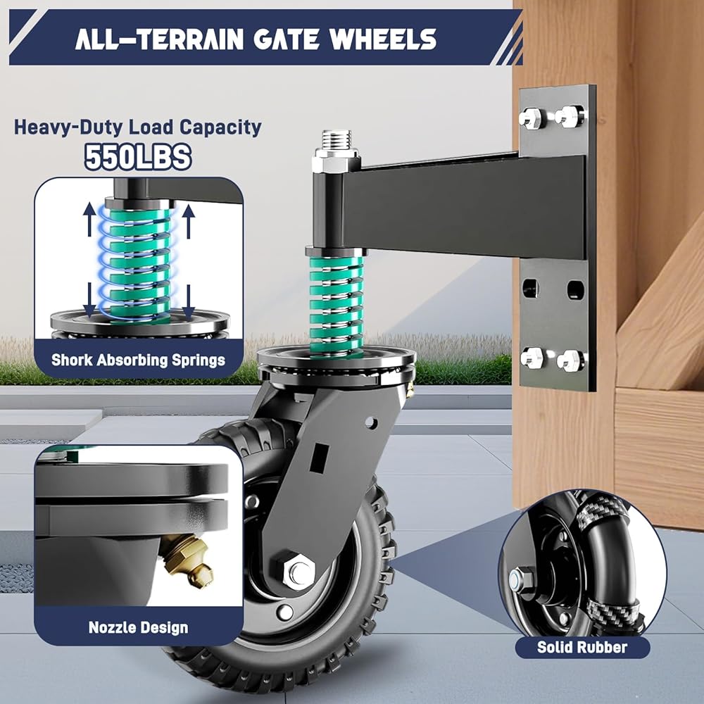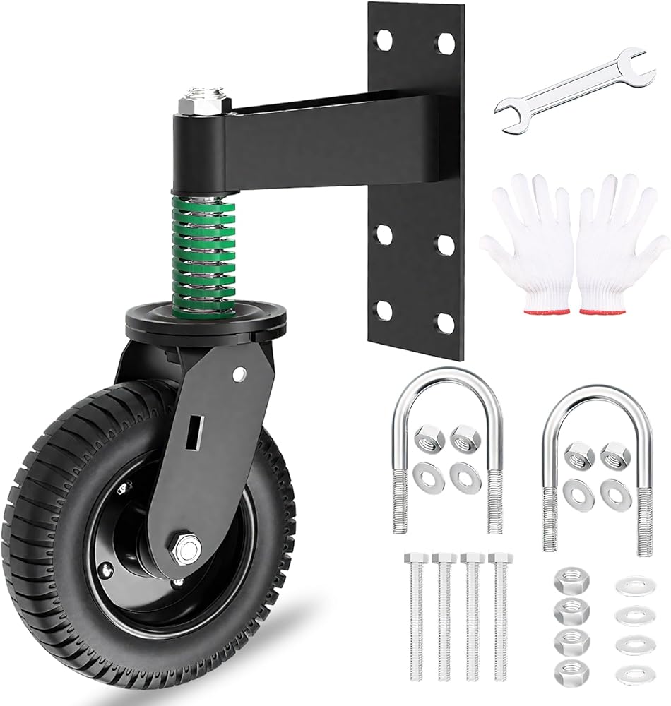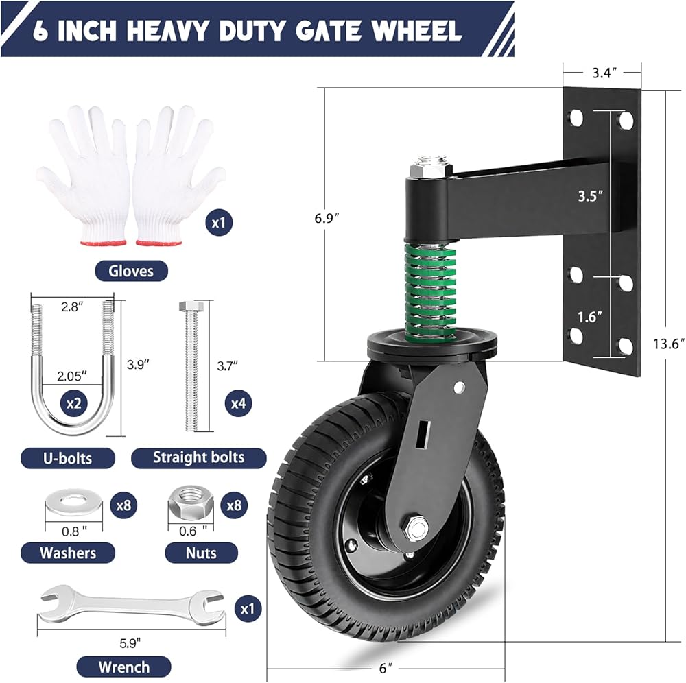 6 Inch Heavy Duty Fence Gate Wheel - 500lb Capacity for Metal Tube Gates Wooden Gates w/ 360° Swivel Spring Loaded Casters - Includes Bolts & Wrench - Smooth Rolling on All Terrains