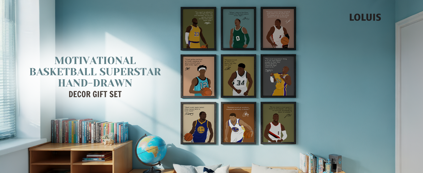 LOLUIS لوحة فنية جدارية تحفيزية، عمل فني مرسوم يدويًا، توقيع نجم كرة السلة، ديكور رياضي لغرفة النوم والمكتب والمنزل وصالة الألعاب الرياضية وغرفة الخزانة