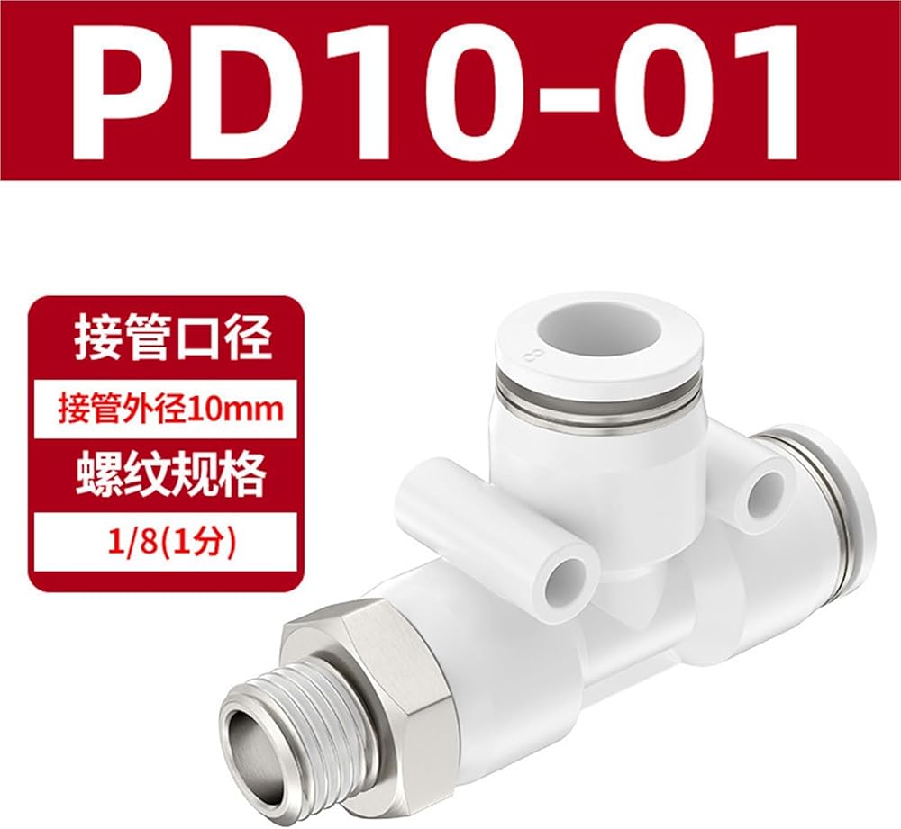 القصبة الهوائية موصل سريع على شكل حرف T الجانب المحملة PD4-01/6-01/8-02/12-04 الملحقات 1 قطعة (白色PD10-01)