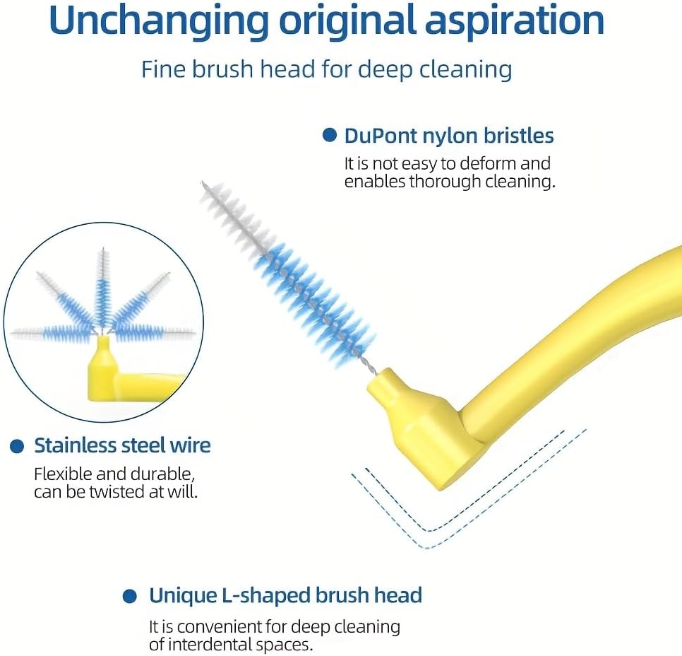 30 قطعة، فرش بزاوية على شكل حرف L، بين الأسنان، أحجام مختلطة، ألوان مختلطة