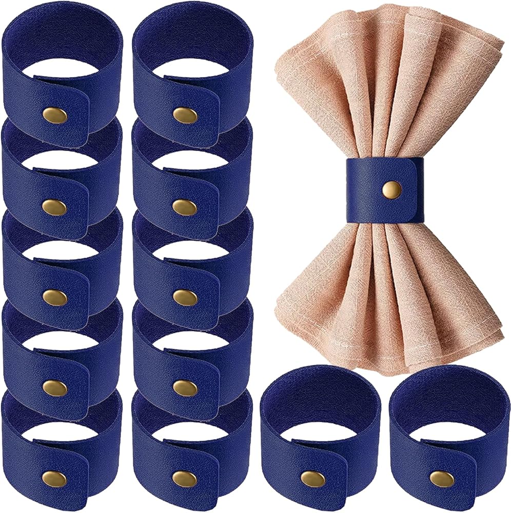 12 قطعة من حلقات المناديل الجلدية الزرقاء بإبزيم منديل ريفي عتيق من الجلد لعيد الميلاد وعيد الشكر وحفلات الزفاف وأعياد الميلاد وتزيين طاولات الطاولة وحلقة منديل الطاولة