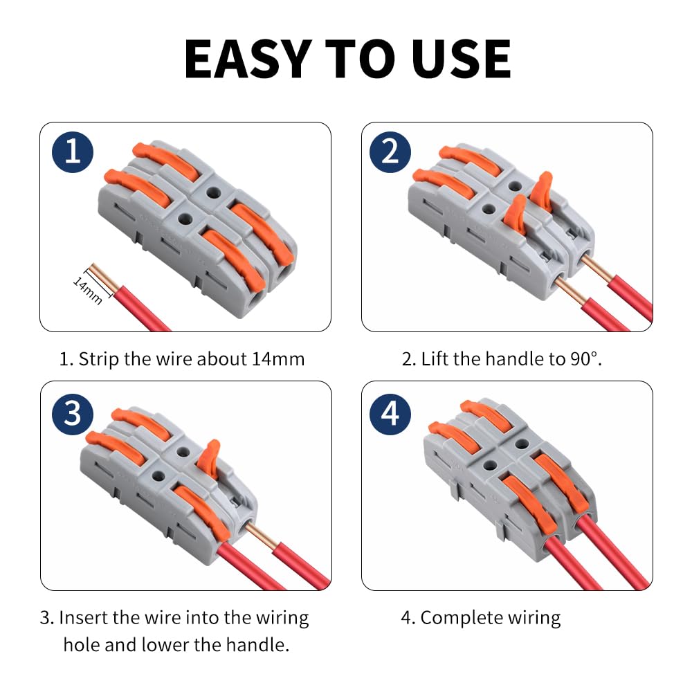 سهل الاستخدام: يمكن لموصل السلك هذا تجميع الأسلاك بسرعة وسهولة دون لف أو شريط تغليف. بفضل تصميم الرافعة، تجعل موصلات الرافعة هذه من السهل توصيل الأسلاك وفصلها.