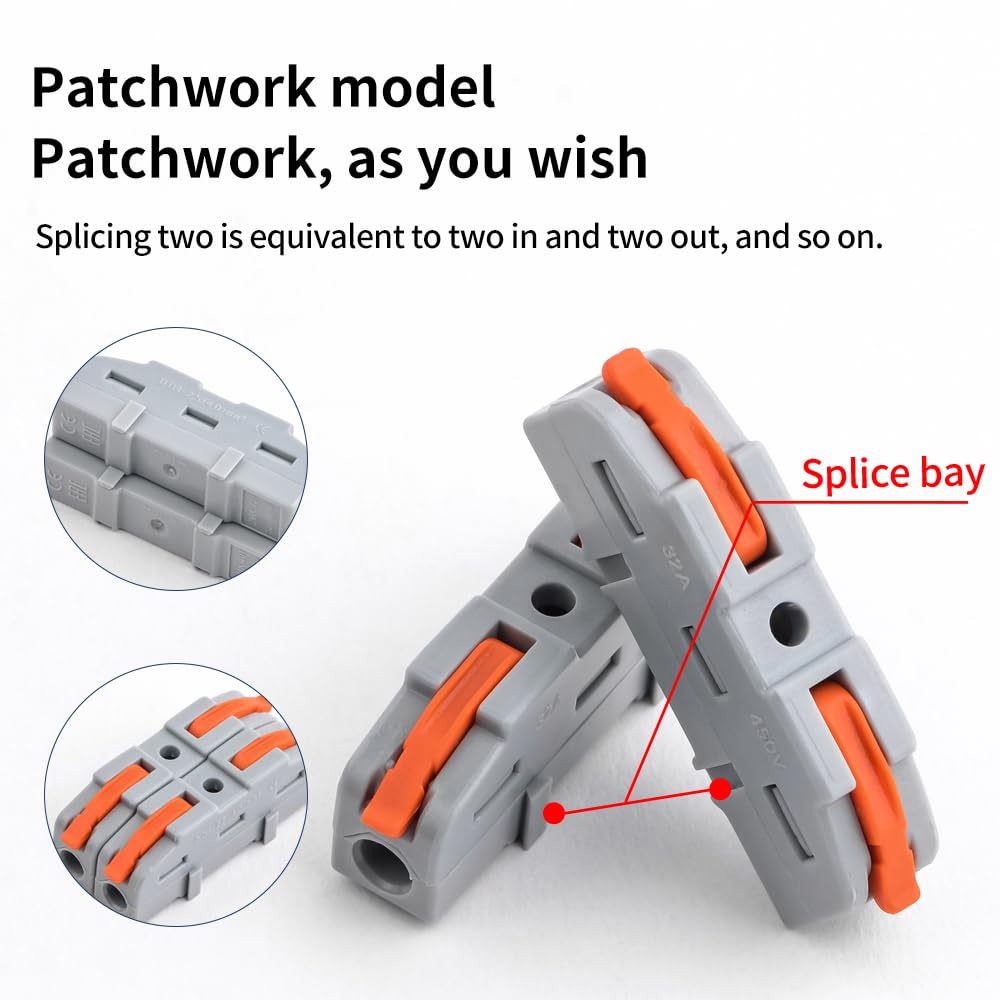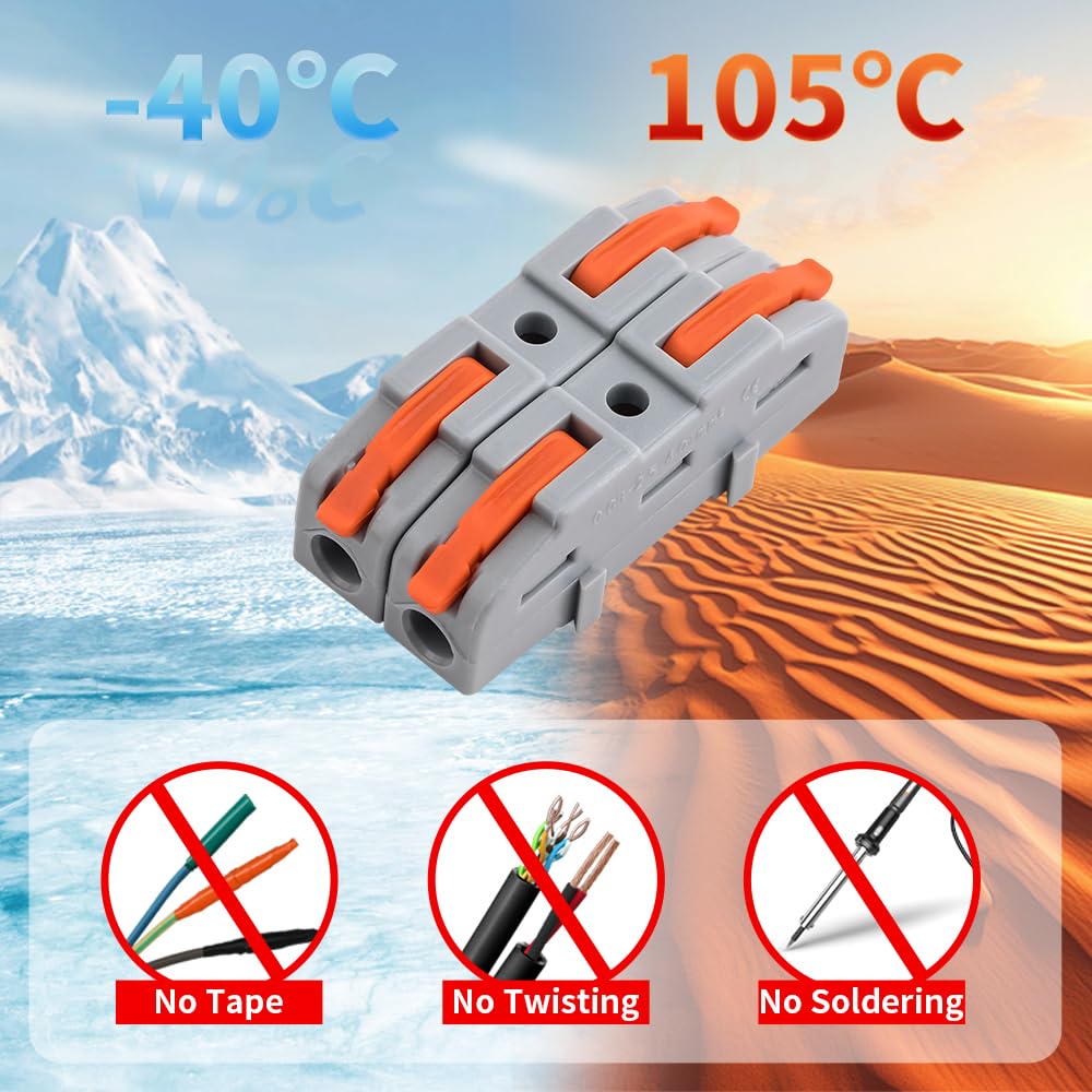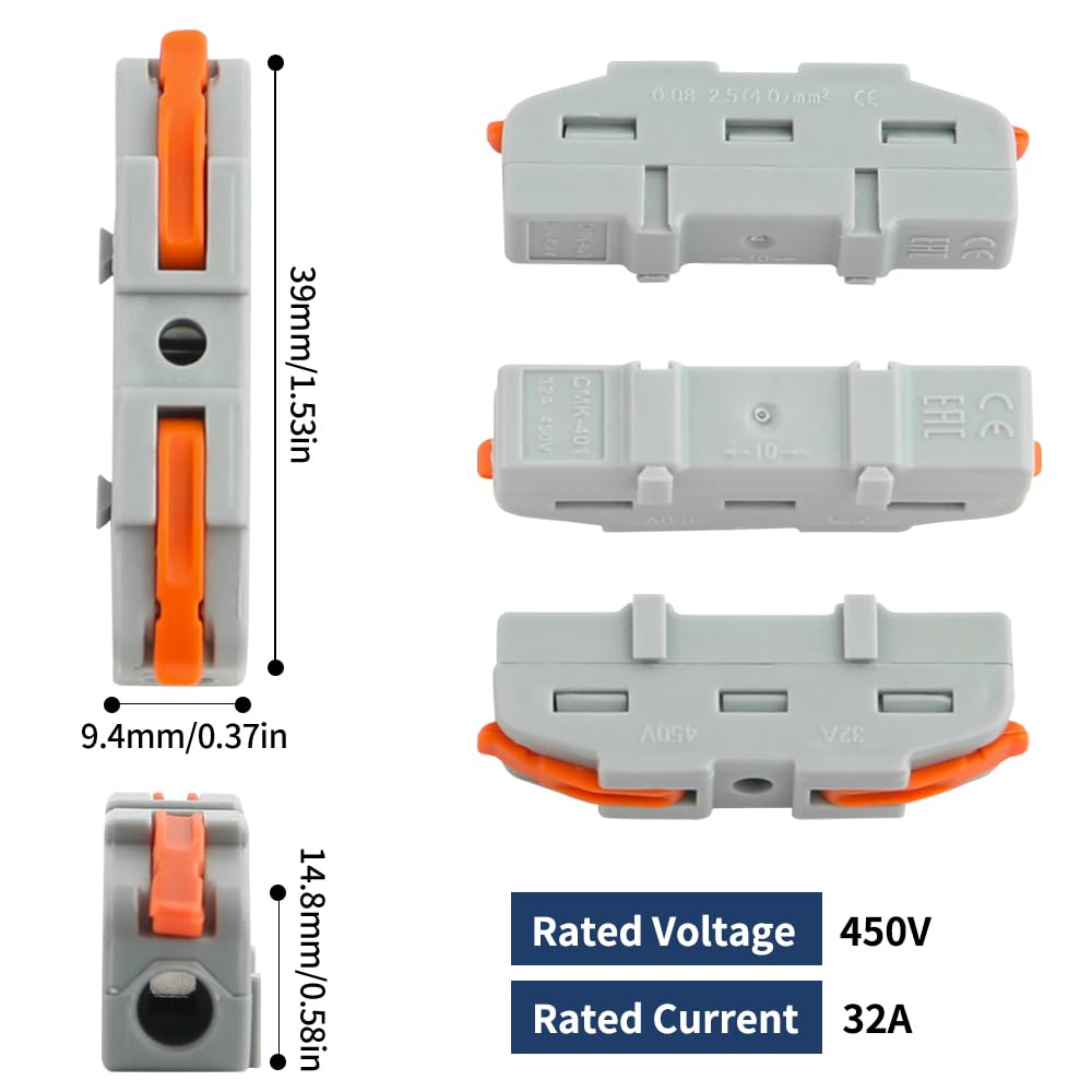 مادة آمنة: مجموعة موصلات سلك الرافعة مصنوعة من مادة مثبطة للهب ومادة البولي كربونات، وهي موصلة ومقاومة للحرارة وموصلة للغاية وقابلة لإعادة الاستخدام. الفولطية 450 فولت، التيار 32 أمبير.