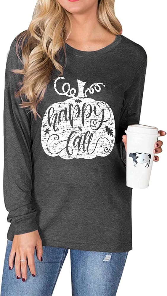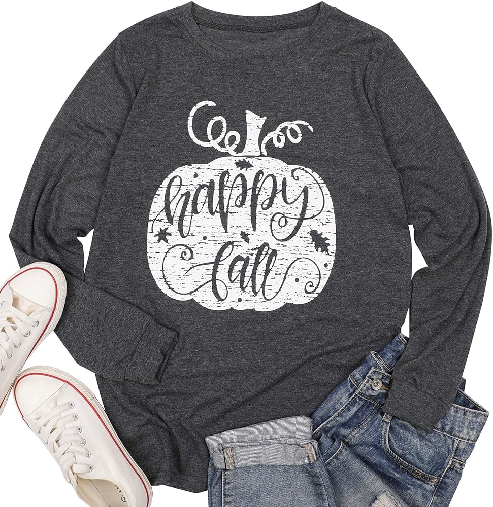 تصميم فريد: يتميز قميص الخريف النسائي لعيد الشكر بتصميم قرع لطيف مع طباعة "Happy Fall" عليه. تتميز بلوزة Pumpkin Fall بتصميم كلاسيكي برقبة دائرية، وربطات الفهد الفريدة، وأكمام طويلة ريجلان، ونمط كاجوال، وهي الخيار الأول لسترة الخريف.