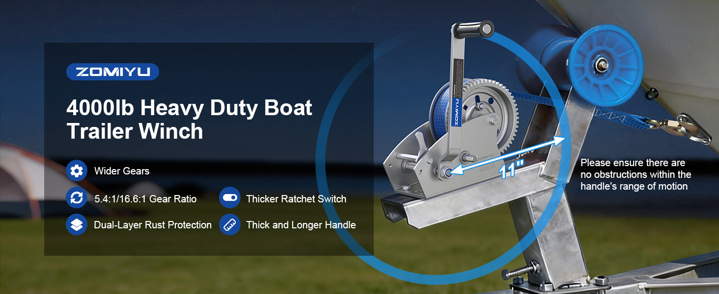 • سعة عالية التحمل تبلغ 4000 رطل - مصممة للأحمال المطلوبة: تم تصميم ونش مقطورة القارب الخاص بنا للسحب الجاد مع قدرة سحب حقيقية تبلغ 4000 رطل. تضمن التروس الفولاذية المعززة عالية الكربون (أعرض وأكثر سمكًا من معظم روافع القوارب) ونظام البراغي عالي التحمل أداءً موثوقًا حتى في ظل الحمل الأقصى، مما يجعلها مثالية للقوارب الكبيرة ومركبات ATV والسجلات ومهام السحب الصعبة.