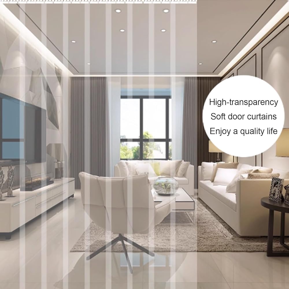 Introducing our high-quality PVC Strip Curtain, designed to enhance your living or working space while providing practical benefits. Made from durable, flexible, and crystal-clear 2mm thick heavy PVC, this curtain ensures maximum visibility without compromising on functionality. With a transparency of 99%, you can enjoy a seamless view of the outside while effectively keeping out flies, dust, wind, and noise, allowing you to stay connected to your environment comfortably. Ideal for various settings such as warehouses, kitchens, and entryways, our PVC Door Curtain acts as an effective barrier while promoting an open atmosphere. The 50% overlapping feature ensures that air flows freely while minimizing disruptions caused by unwanted elements. Available in customizable widths and lengths, choose from a variety of dimensions to fit your specific needs. The width per strip is 18 cm, with options for 75cm, 90cm, 105cm, 120cm, 135cm, and 150cm wide configurations, making it easy to adapt to different door sizes. Calculate the required number of curtains based on your door width for optimal coverage. Installation is straightforward, and our PVC Thermal Insulated Door Curtain is designed to withstand temperature fluctuations, ensuring longevity and reliability. Please note that slight variations in thickness may occur due to the hot-pressing and cooling process. For any questions or assistance, our dedicated customer service team is here to help. Elevate your space with our transparent partition curtain and enjoy the perfect blend of visibility and protection.