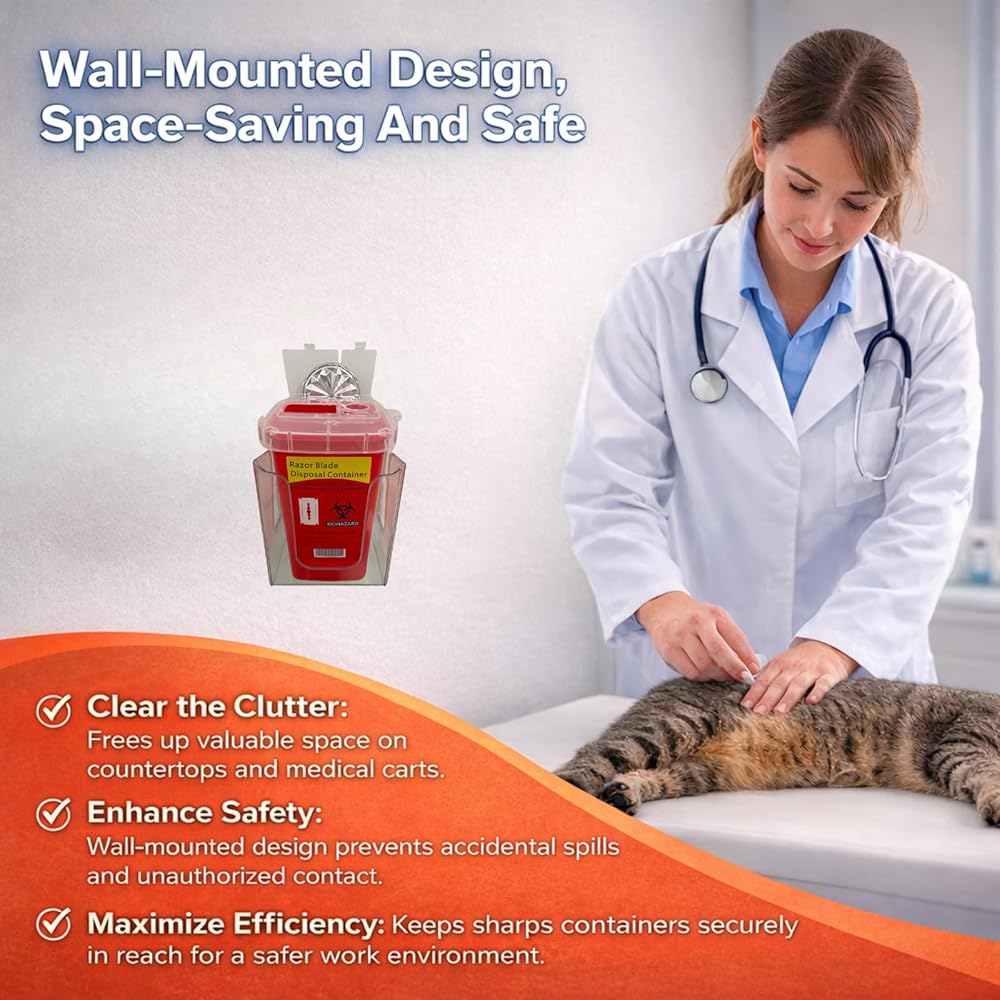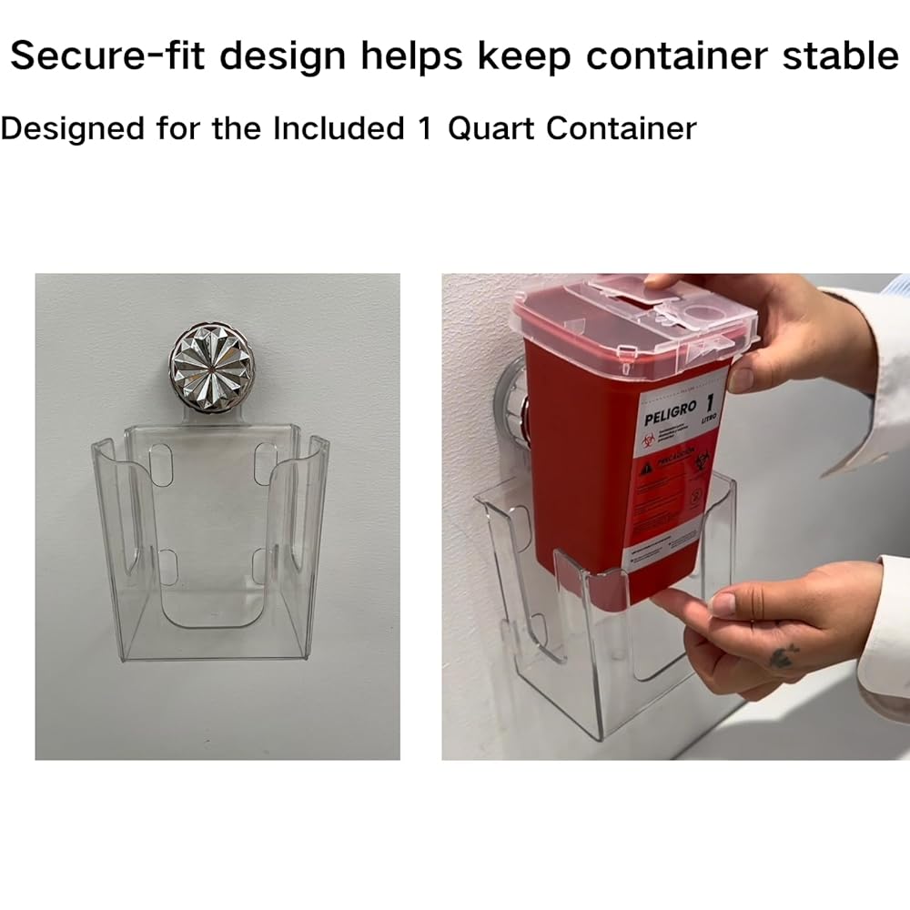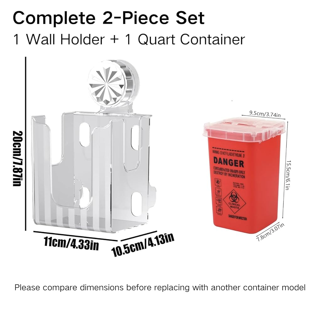 📦 Complete 2-Piece Set – Includes 1 clear wall mount holder and 1 matching 1 quart sharps container, giving you a ready-to-use setup for safer wall storage right out of the box
