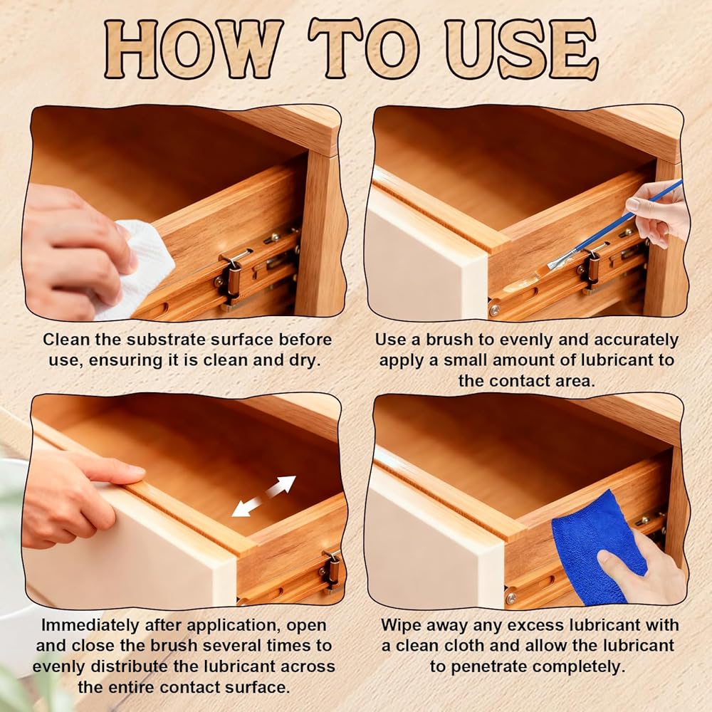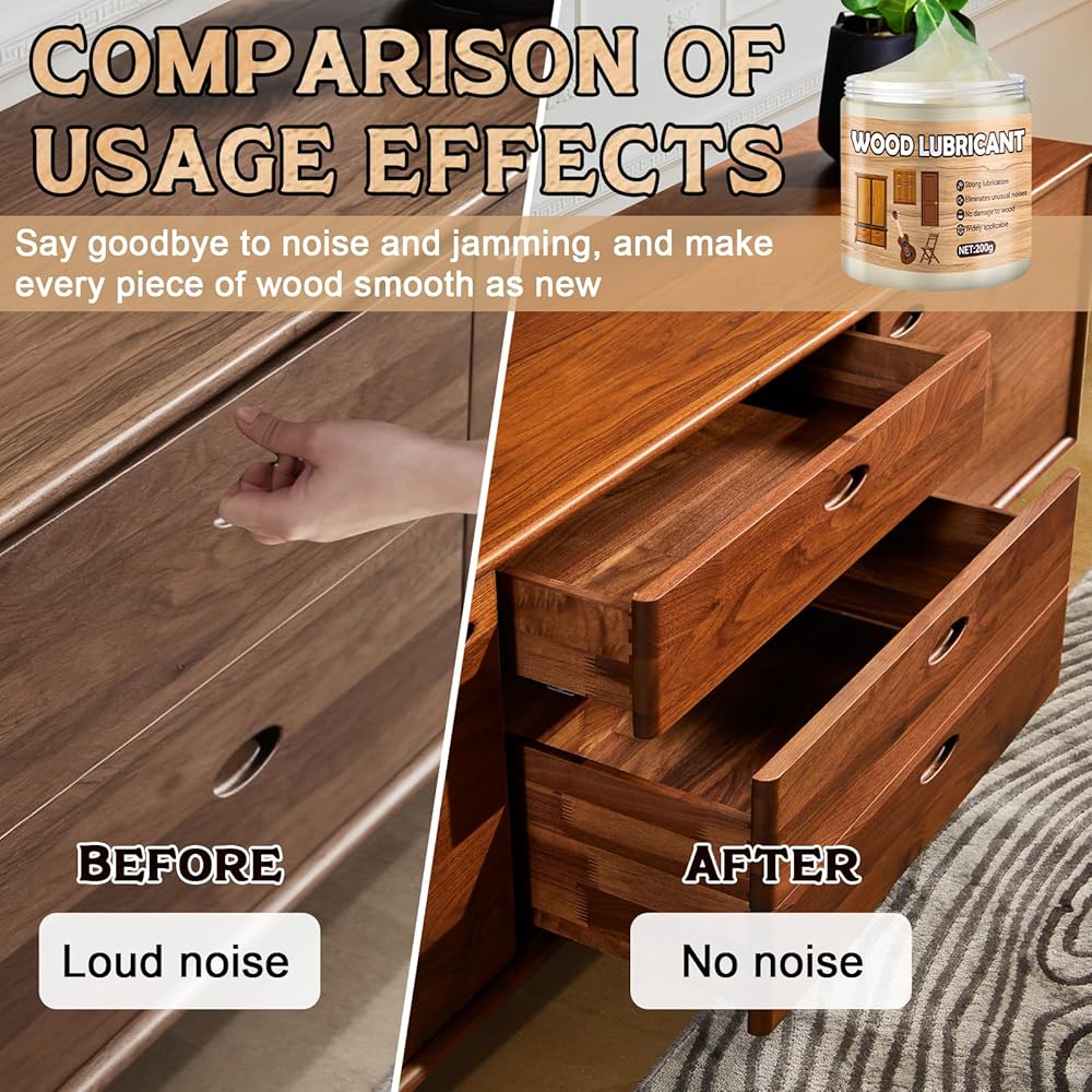 • Anti-stick: Wood can swell and stick due to humidity fluctuations. This drawer slide wax has a refreshing, non-sticky texture, effectively preventing the wood from expanding and sticking together.