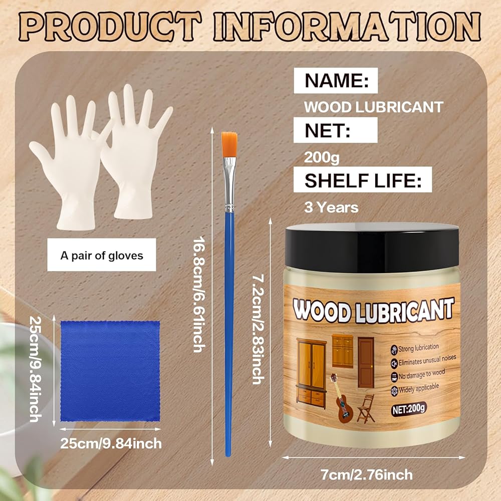 Our professional wood lubricant, developed with a deep understanding of wood properties, provides a truly safe, effective, and targeted solution. Its formula protects wood fibers and surface coatings, making it a safe choice for antique furniture and fine musical instruments. Furniture wax not only provides surface lubrication but also gently penetrates to reduce friction from within, resulting in a long-lasting effect. Regular use reduces physical wear, protects the mortise and tenon joints and sliding rails, and extends the life of precious wood products.