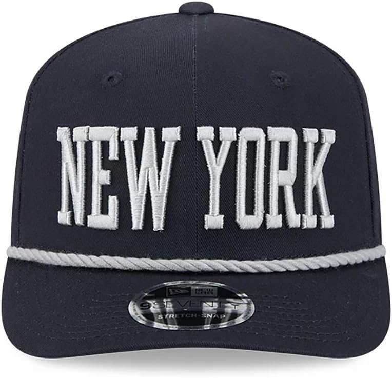 Complete your New York Yankees game day look with this New Era Multi-Rope 9SEVENTY Stretch-Snap Hat. The structured crown and slightly curved visor provide a modern, sleek look, while the performance stretch sweatband ensures a comfortable fit all day long. With its embroidered New York Yankees graphic and rope embellishment across the visor, this hat is a stylish way to show your team spirit.