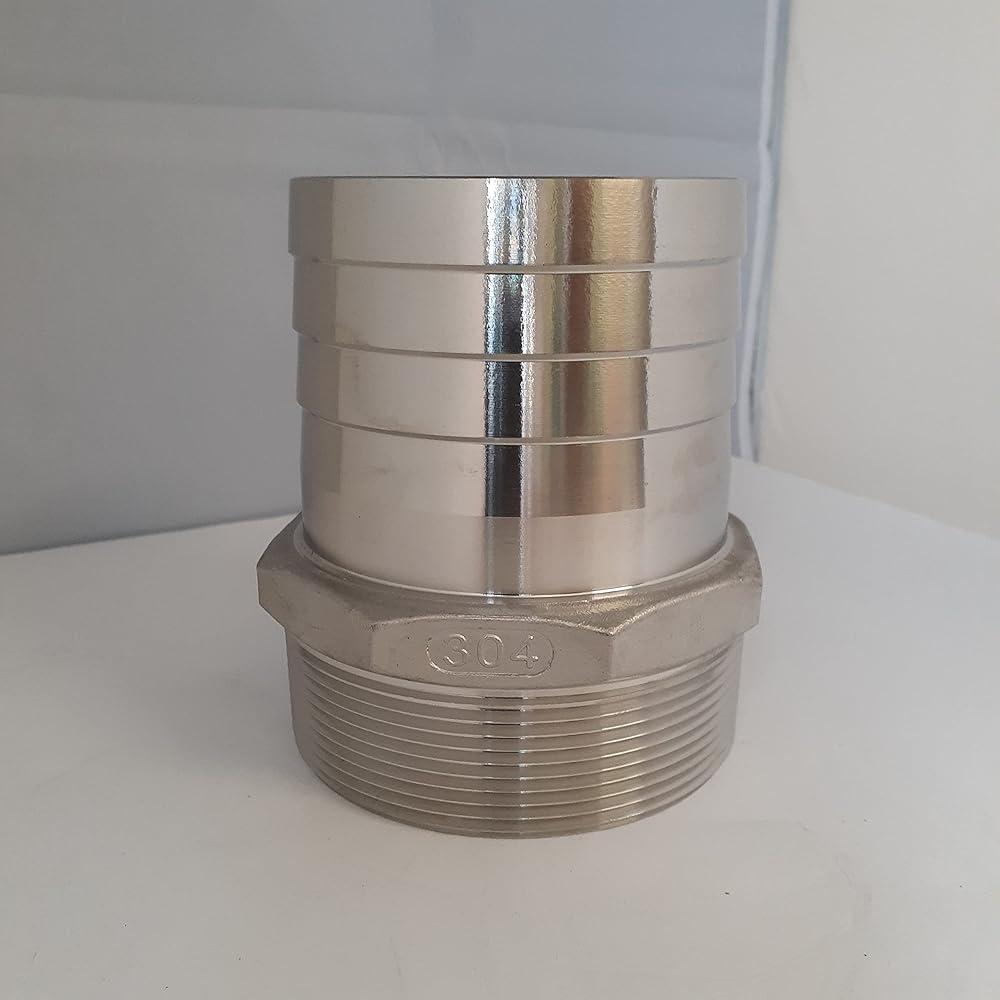 محول خرطوم سداسي من الفولاذ المقاوم للصدأ 304، قضيب خرطوم معرف 3 بوصة × ذكر NPT 3 بوصة، تركيب التعامل مع السوائل، أقصى ضغط 150 رطل لكل بوصة مربعة، معتمد من CE وISO9001