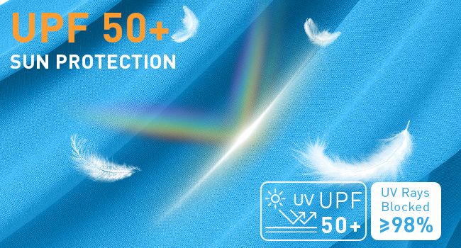 حماية من أشعة الشمس بعامل حماية من أشعة الشمس 50+: يوفر النسيج المتشابك درعًا موثوقًا يحجب 98% من الأشعة فوق البنفسجية فئة A والأشعة فوق البنفسجية فئة B؛ توفر طبقة الحماية من الشمس المادية هذه تغطية فعالة بعامل حماية من الشمس (SPF) لبشرتك؛ استمتع بالأنشطة الخارجية مع حماية موثوقة من الأشعة فوق البنفسجية