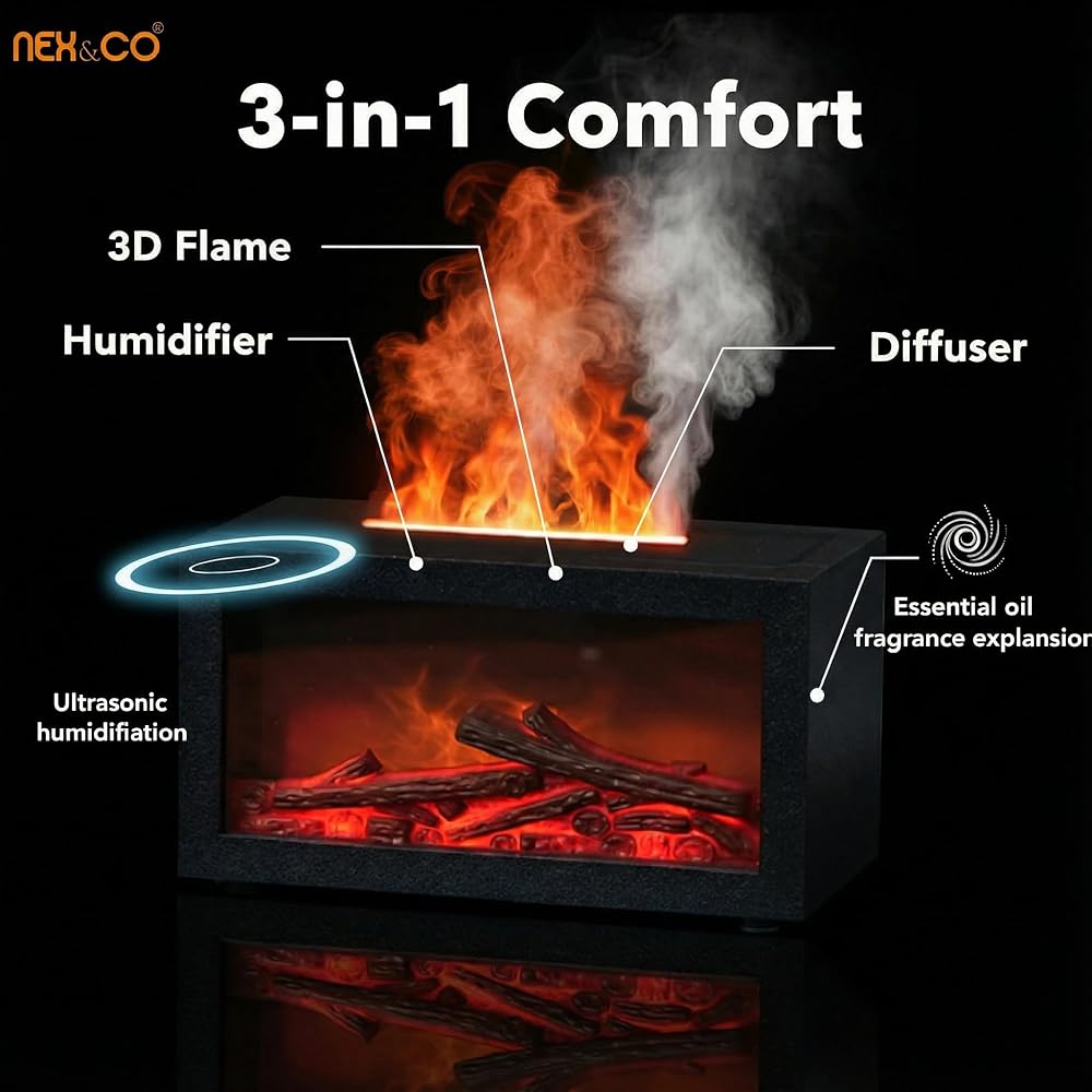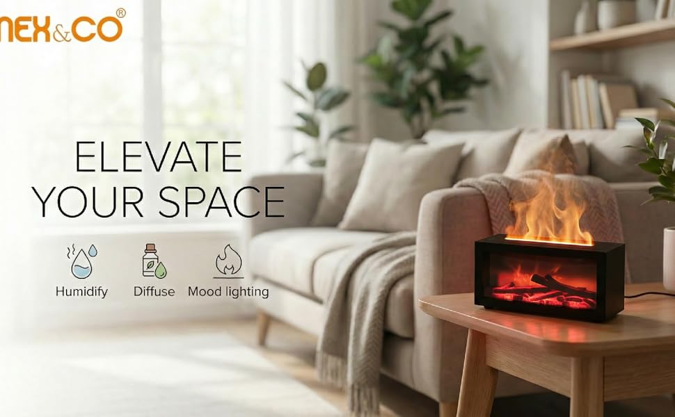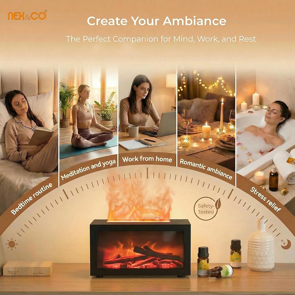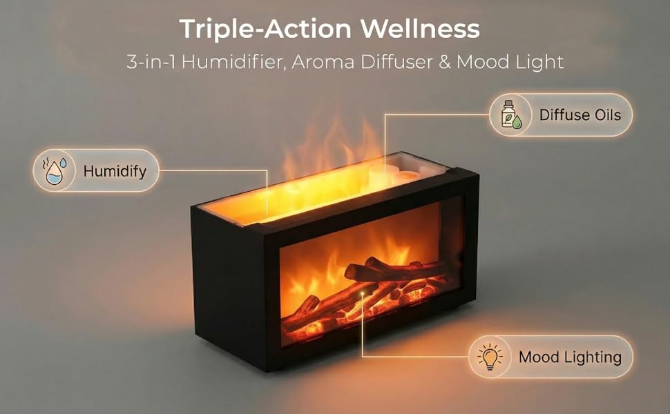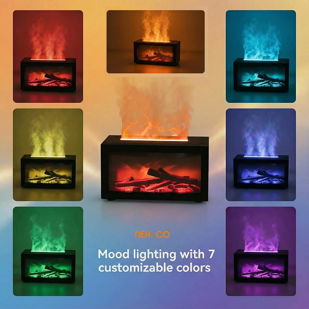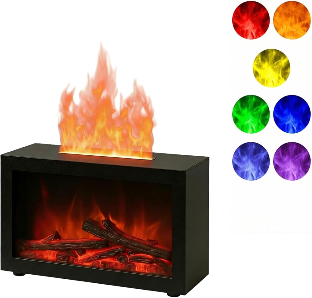 لهب مدفأة واقعي وأضواء ذات 7 ألوان - يتميز برذاذ مبتكر + نظام LED يخلق تأثيرًا بصريًا آمنًا وساحرًا للهب. اختر من بين 7 ألوان (دائرية أو ثابتة) لإضفاء أجواء مريحة للاسترخاء أو التأمل أو الليالي الرومانسية، مما يعزز مزاجك دون نار حقيقية.