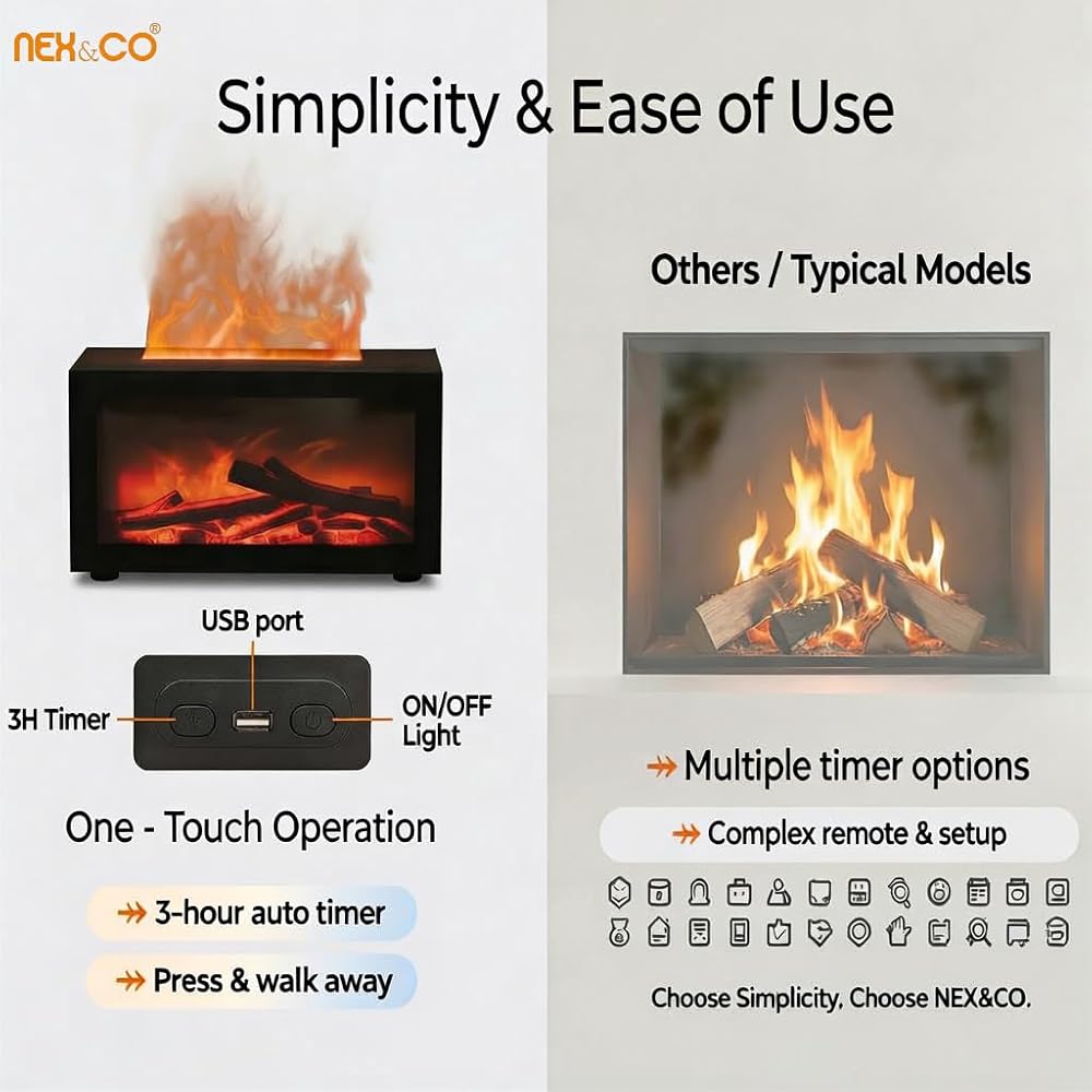 إيقاف تلقائي لراحة البال - يمكنك النوم أو مغادرة الغرفة دون قلق. تمت برمجة ناشر اللهب ليتوقف عن العمل بأمان بعد دورة مدتها 3 ساعات، مما يحمي الجهاز ويوفر الطاقة ويمنحك حرية الانجراف إلى نوم عميق دون إزعاج أو الابتعاد دون قلق.