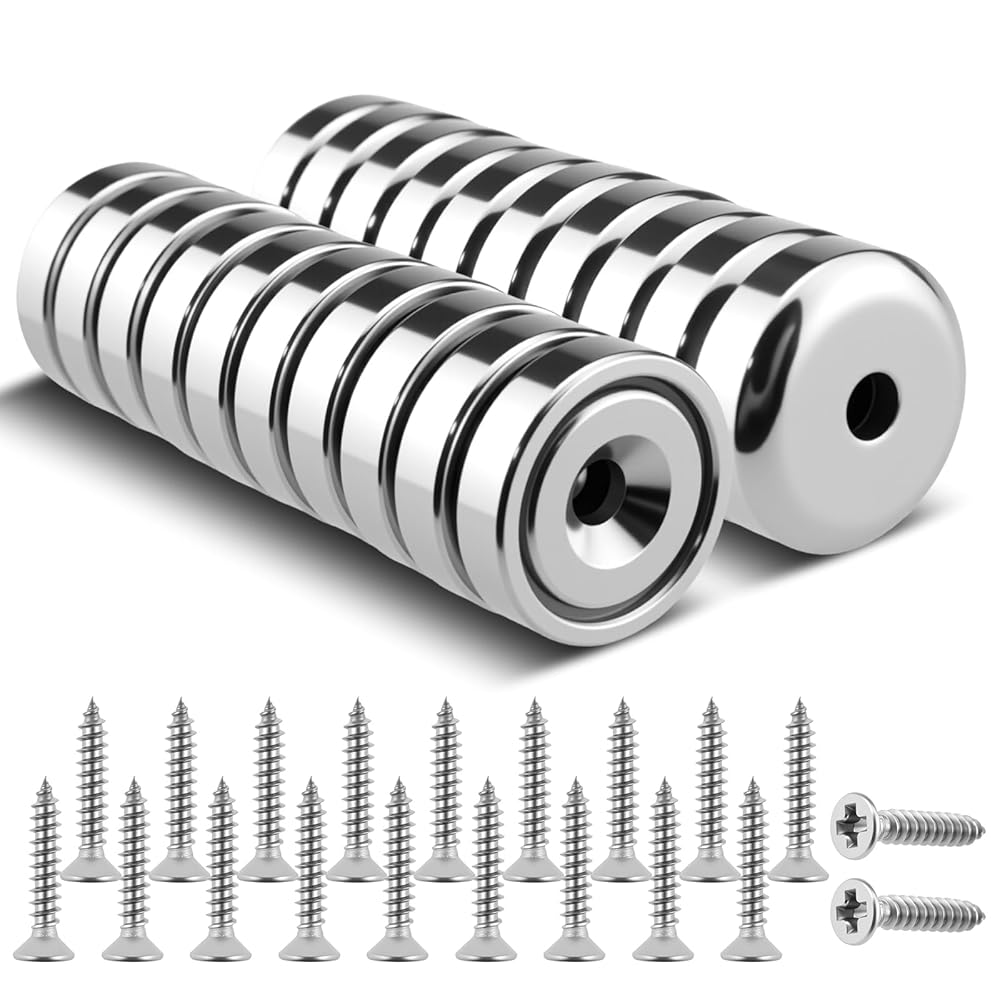 20 قطعة من مغناطيسات أقراص النيوديميوم مع فتحات، مغناطيسات أرضية نادرة قوية بوزن 18 رطلاً مع براغي لتعليق المطبخ، وتخزين الأدوات، والتركيب على الحائط (0.63 × 0.19 بوصة)