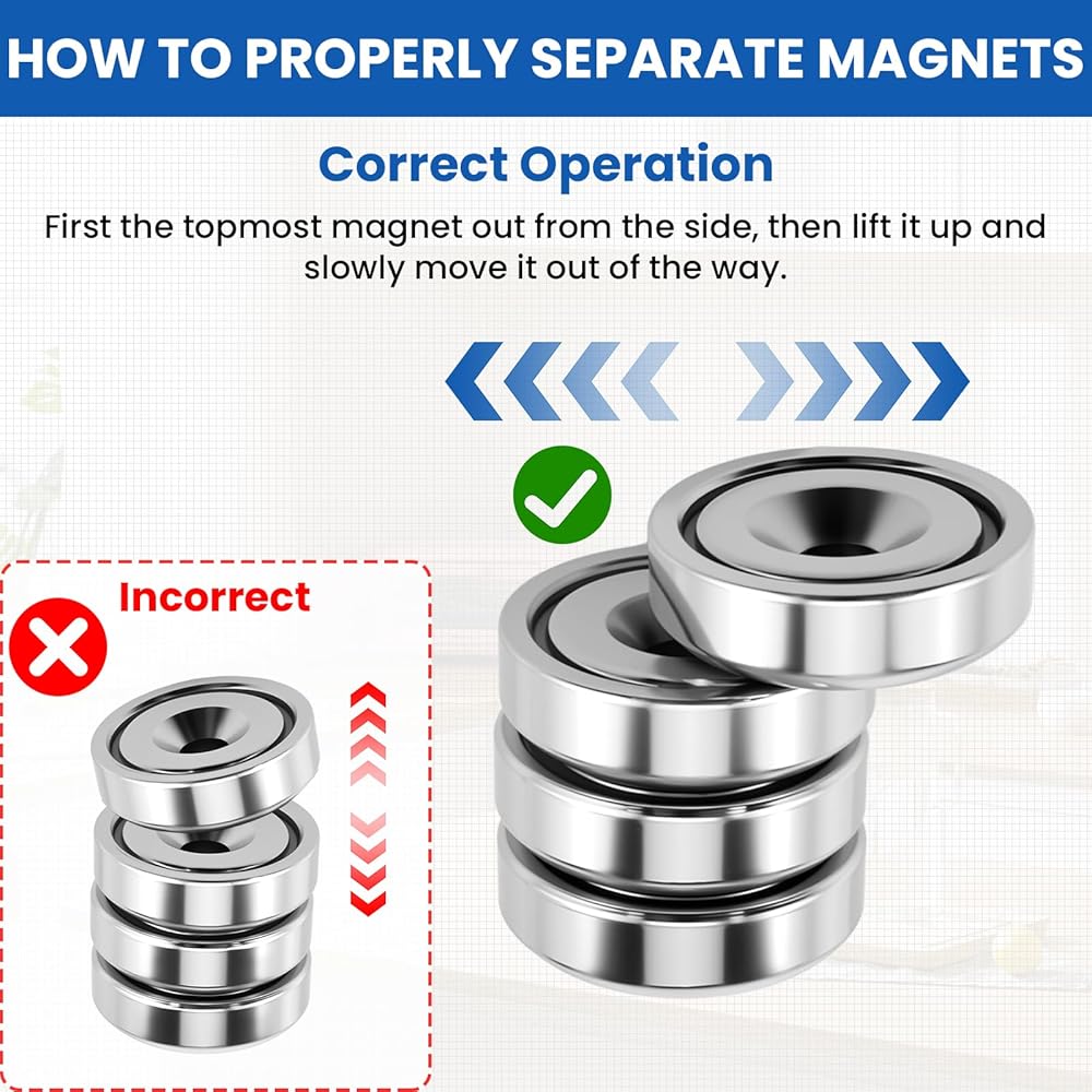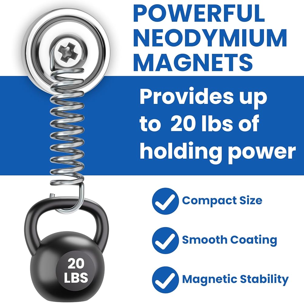 𝐏𝐫𝐞𝐦𝐢𝐮𝐦 𝐌𝐚𝐭𝐞𝐫𝐢𝐚𝐥𝐬: مصنوع من مغناطيس النيوديميوم مع طلاء ثلاثي الطبقات. السطح مغلف بكوب فولاذي واقٍ، مما يحمي المغناطيس بشكل فعال من التلف أثناء الاستخدام اليومي. صغير الحجم لكنه قوي في القدرة على الإمساك، كل مغناطيس أرضي نادر يوفر ما يصل إلى 20 رطلاً من قوة الإمساك
