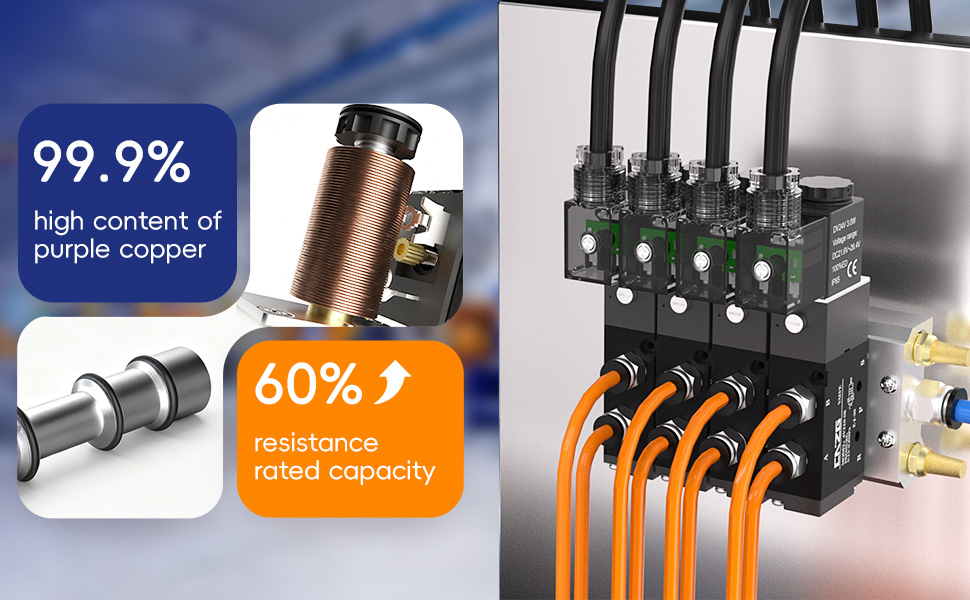 - العبوة: قطعة واحدة من صمامات الملف اللولبي، 3 قطع PC 1/4-1/4"NPT، قطعتان كاتم صوت SL 1/8"NPT، و1 لفة من شريط PTFE