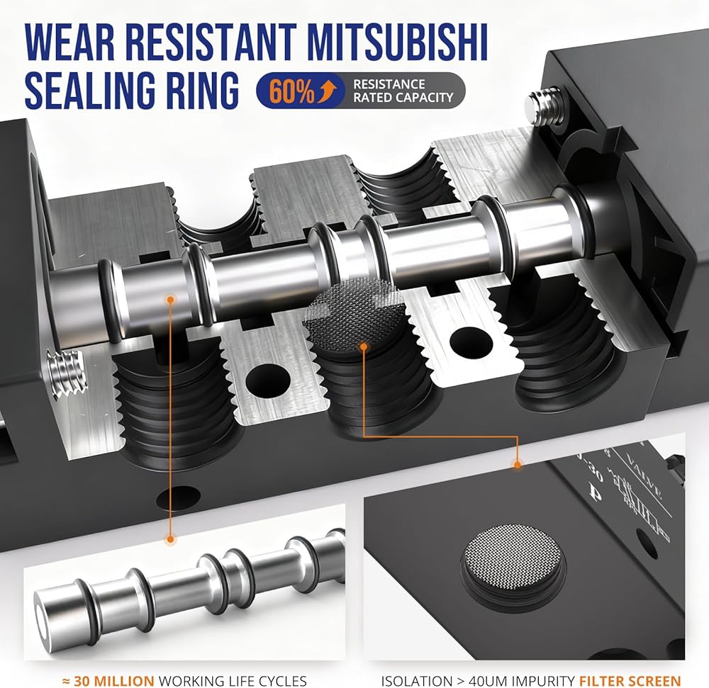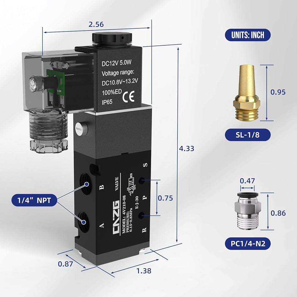 - الحجم: مجهز بمنافذ مدخل/مخرج NPT 1/4 بوصة و3 تركيبات سريعة التوصيل، يدعم هذا الصمام كلاً من خراطيم الهواء 1/4 بوصة و1/4 بوصة. يوفر سهولة التركيب والتوافق المرن عبر معظم الأنظمة الهوائية