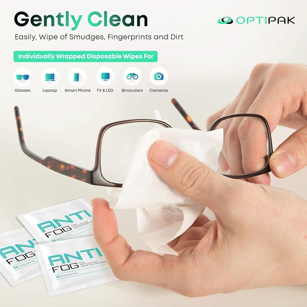 مناديل مضادة للضباب مبللة مسبقًا: توفر مناديل OPTIPAK المبللة مسبقًا المضادة للضباب طريقة سريعة ومريحة لتنظيف ومعالجة النظارات والنظارات الشمسية والنظارات الواقية ونظارات السلامة. كل منديل ملفوف مضاد للضباب يمكن التخلص منه جاهز للاستخدام ومثالي للحفاظ على عدسات واضحة وخالية من الضباب.