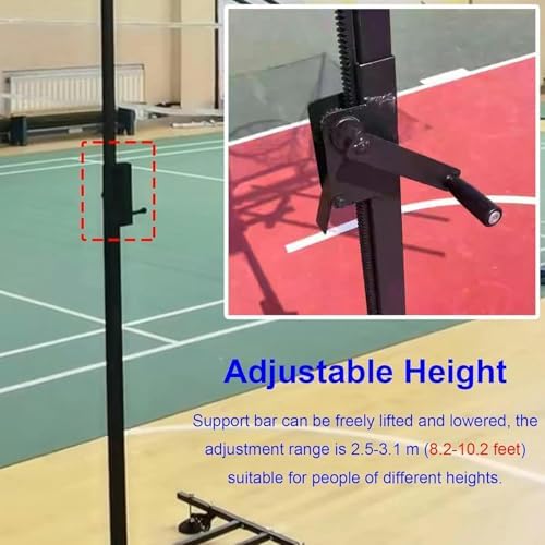 Shooting rack with retractable pole adjust the height of the rebounding net by free expansion suitable for people of different heights such as adults teenagers etcAdjustment height range: 2.5-3.1m (8.2-10.2ft).