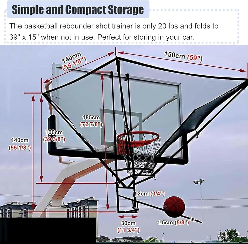 The basketball return attachment is made of high quality metal and high-density woven mesh which is impact-resistant wear-resistant; it can withstand forceful hits of basketballIdeal for long term shooting training.