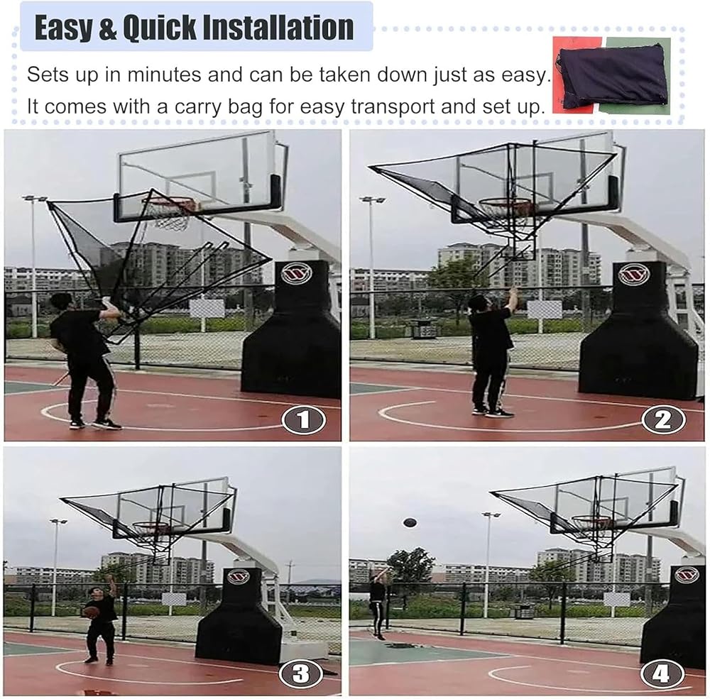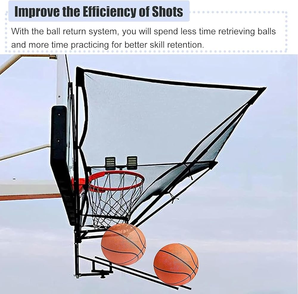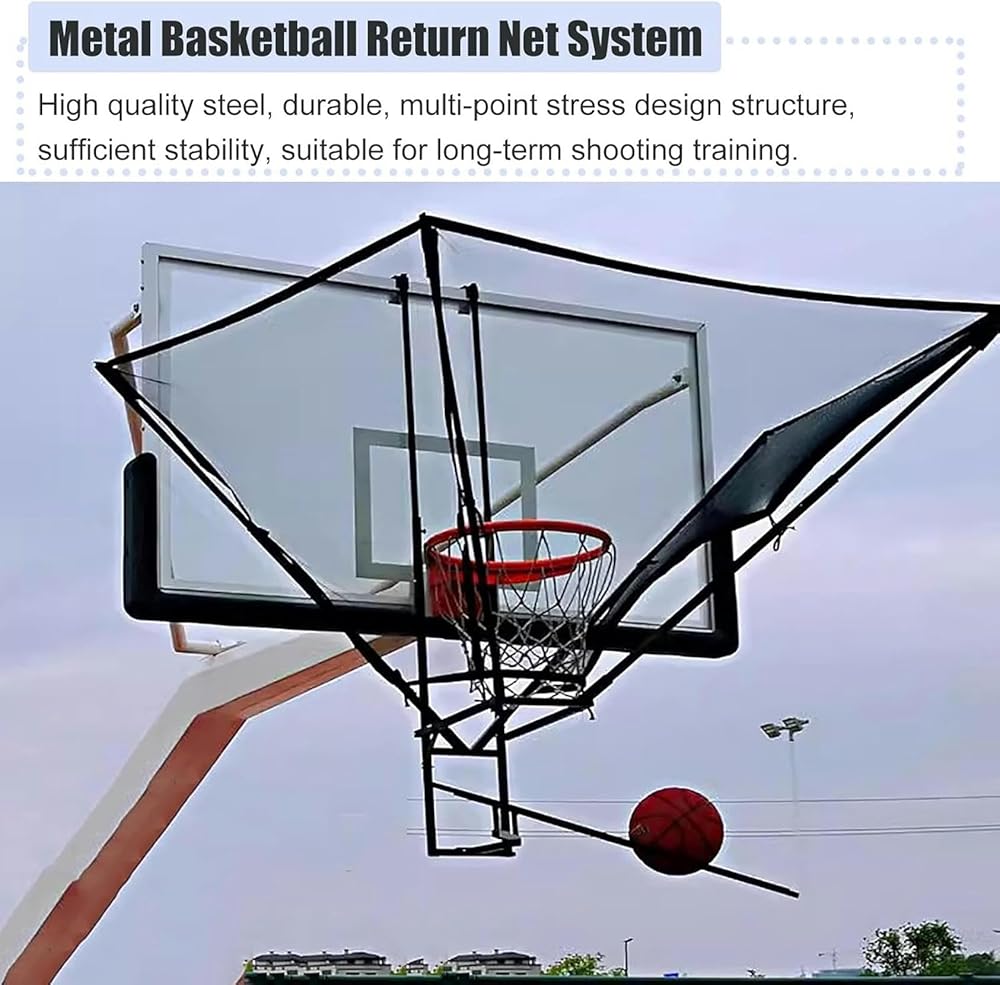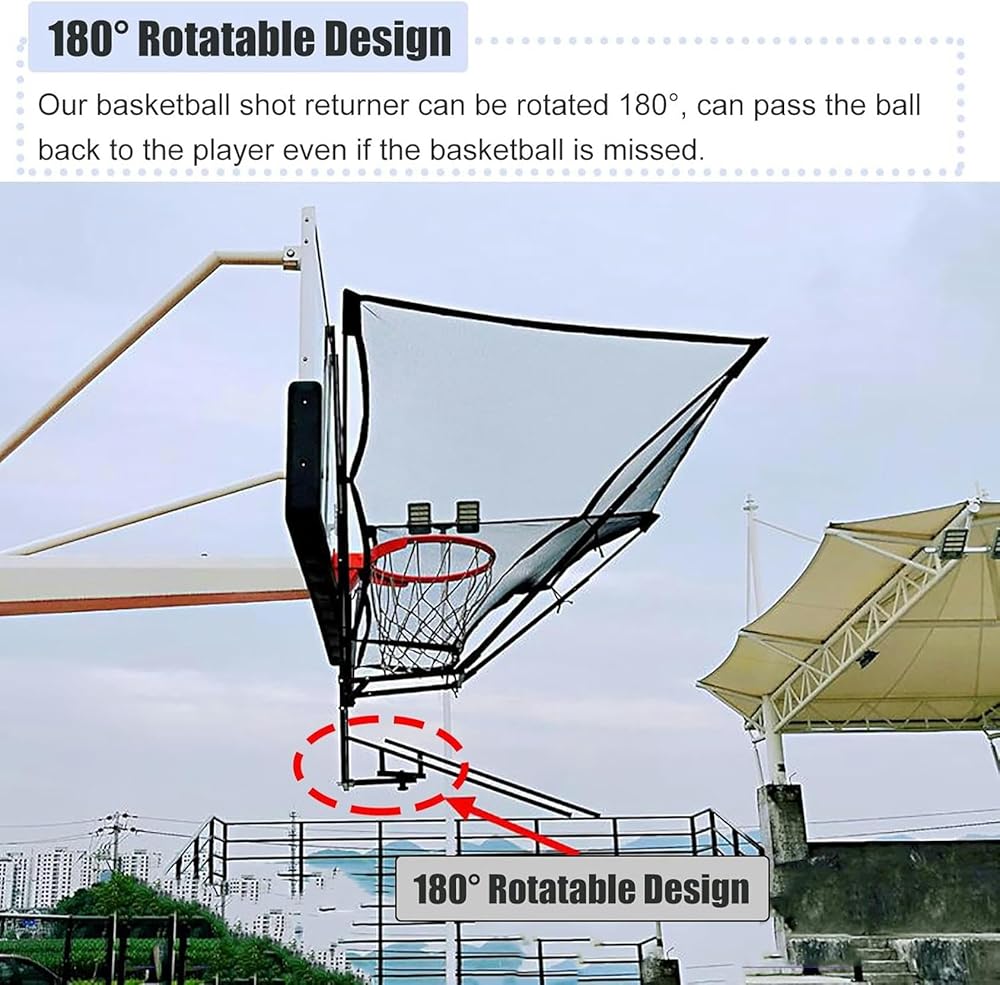 Basketball Hoop Returner Our basketball ball returner can be rotated 180°Large-scale basketball backboard return net device even if the basketball misses the ball can be passed to the player to improve the batting efficiency.