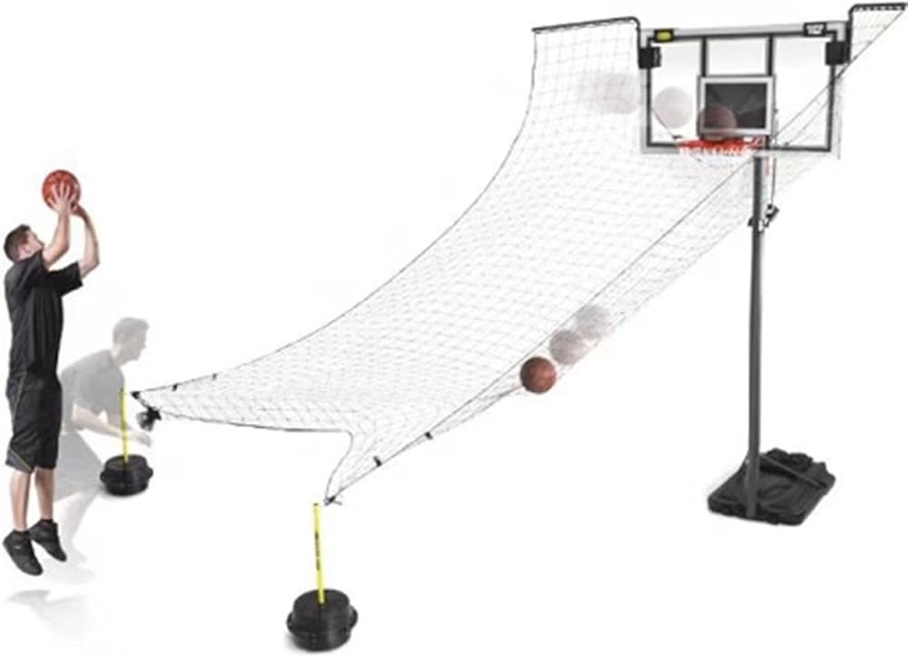 Time-saving --- The basketball rebounder is designed for practice efficiency and technique improvementThe basketball hoop return system will return the ball to shooter help the shooter maintain the shooting state and adjust technical actions.Allows you to practice your 3-pointers jump shots free-throw long shots and more! perfect for solo practice or two guys stationary shooting practice.