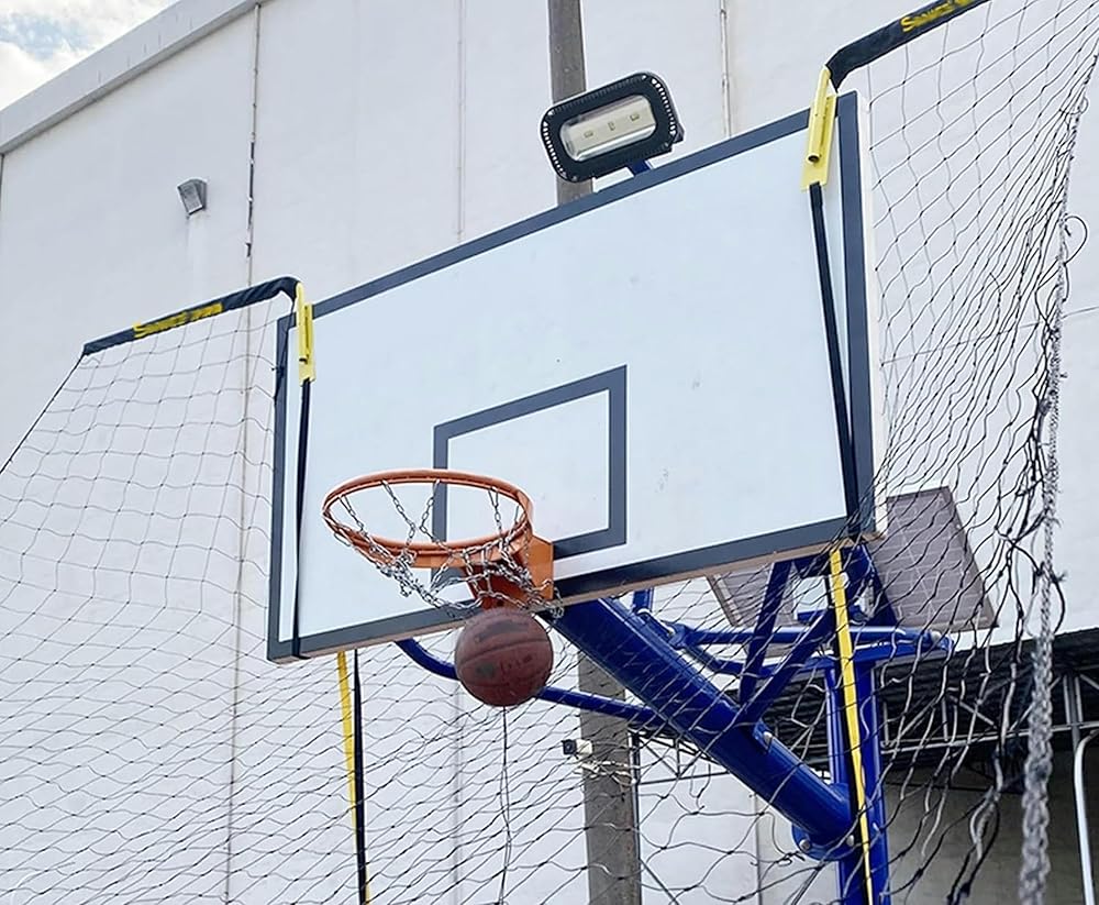 Basketball Hoop Returner The rebound net will not block the view90° rotatable return brackets return shots and misses faster to the player on the court at any angle reducing time spent chg the basketballAdjust position of water bag to dunkThe rebound net can be used as a guard net no need to remove itNo more worrying about ball bouncing into a window or neighbor's yard.