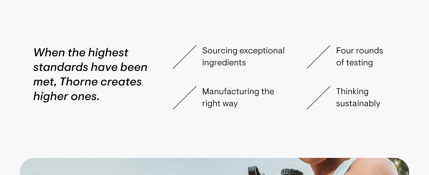 • موثوق به: تم اختيار Thorne من قبل الأبطال وحاز على ثقة أكثر من 100 فريق رياضي محترف، وهو شريك فخور للفرق الوطنية الأمريكية، والعلامة التجارية السريرية رقم 1 الموصى بها من قبل ممارسي الرعاية الصحية (استطلاع بائعي ممارسي الرعاية الصحية لعام 2023)