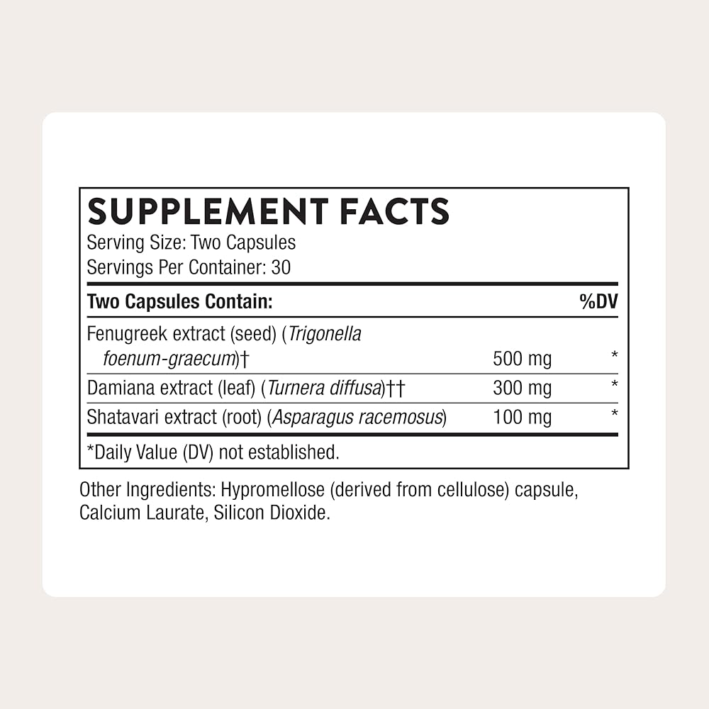 • تركيبة محفزة: مستخلص داميانا، موحد بنسبة 1.5% من الفلافونويد، يشجع الرغبة والتحفيز للعلاقة الحميمة، ويعزز تزييت المهبل وإطلاق أكسيد النيتريك لتعزيز تدفق الدم من أجل وظيفة جنسية صحية*