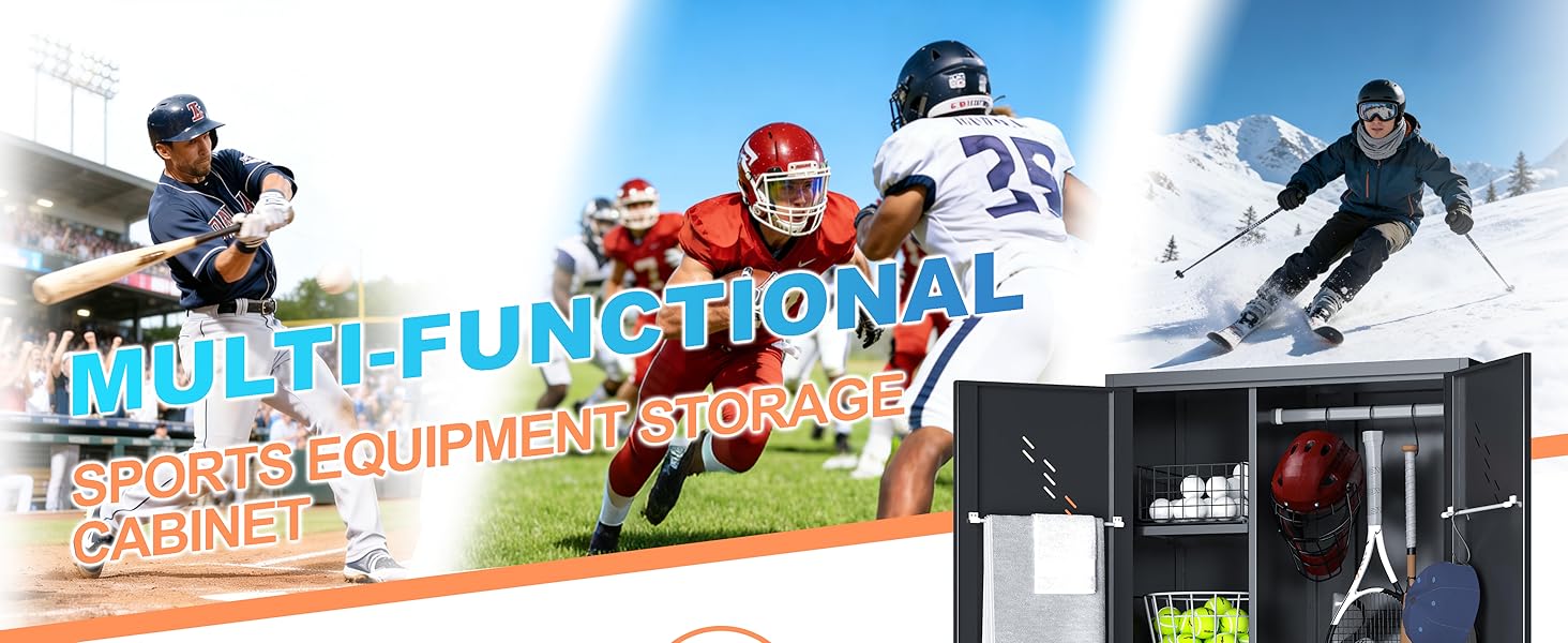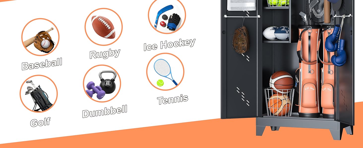 【متعددة الاستخدامات لأي مساحة 】استخدم خزانة التخزين الرياضية هذه في المرآب أو الأقبية أو غرف الألعاب أو صالات الألعاب الرياضية أو المدارس. تم تصميمها كخزانة تخزين عملية للجراج ومنظم للمعدات الرياضية للتخلص من الفوضى والحفاظ على المعدات جاهزة للاستخدام