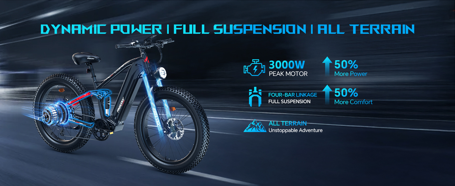 FREESKY 3000W Electric Bike for Adults, 37MPH & 95Miles Range, Dirt All-Terrain Electric Bicycle, 48V 25Ah Removable Battery,26" Fat Tire Full Suspension Mountain Ebike, UL2849 Certified by TÜV