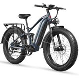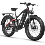 【𝗙𝘂𝗹𝗹 𝗦𝘂𝘀𝗽𝗲𝗻𝘀𝗶𝗼𝗻 𝗦𝘆𝘀𝘁𝗲𝗺】FREESKY Eurostar Ultra full suspension electric mountain bike is equipped with a lockable hydraulic front suspension fork and rear shock absorber that allows you to explore the cityscape while minimizing bumps in the ride, provide you a very comfortable riding experience even on rough roads