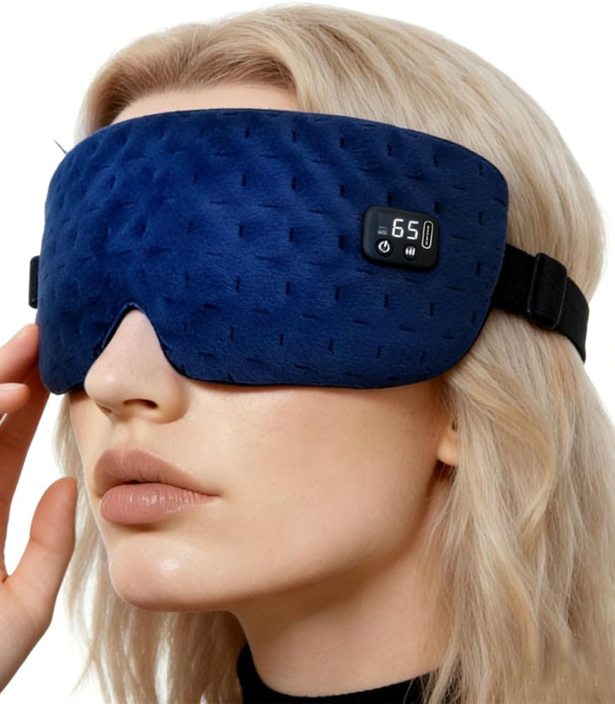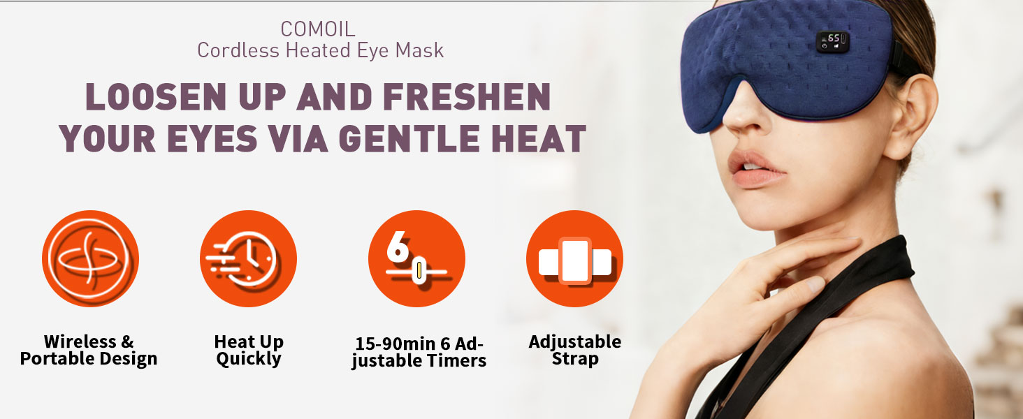 عين لاسلكية ساخنة للعيون الجافة مع 6 مؤقتات | ضغط العين الدافئ بدقة 35-65 درجة مئوية بقوة 1500 مللي أمبير في الساعة | وسادة تدفئة قابلة للغسل للعناية بالعين، كحلي