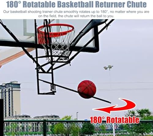180° Rotatable Basketball Shot Returner Chute : Our basketball shooting trainer chute smoothly rotates up to 180° no matter where you are on the field the chute will return the ball to you.
