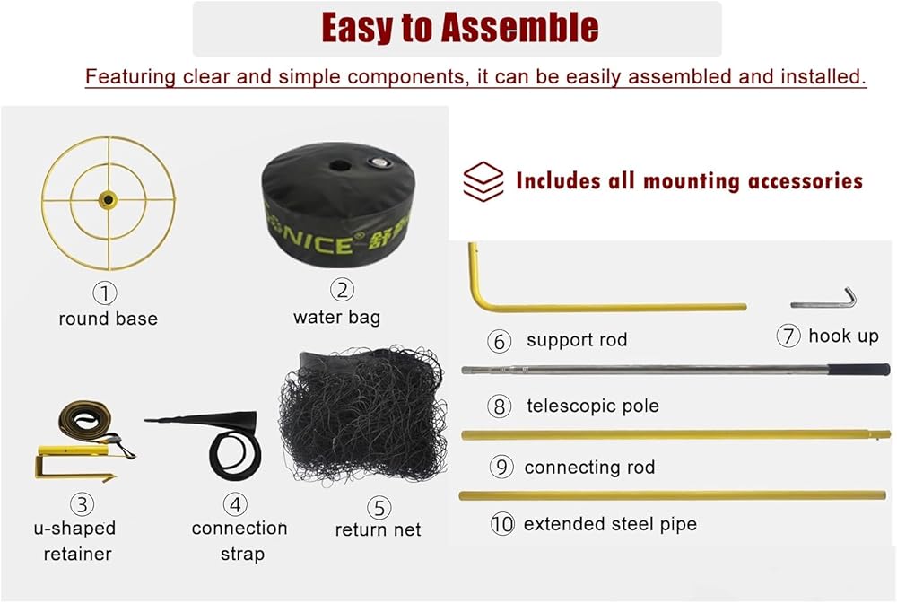 With clear and simple components our ball return attachment system assembles and installs with ease.