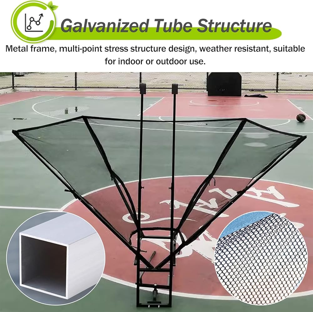 : Our basketball rebound net can be rotated 180° to customize the practice experience and basketball return around the courtQuickly returns the ball to the shooter reducing the time spent chasing the basketball improving shooting efficiency and providing us with more practice options.