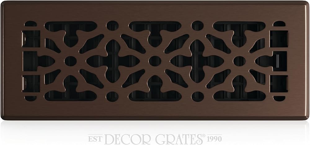 GOTHIC DESIGN,RUBBED BRONZE FINISH, FILTER READY– Decorative gothic pattern in a rubbed bronze finish complements most flooring and décor styles and works with the Decor Grates filter retainer and filters (sold separately) to help trap dust & debris