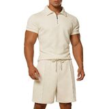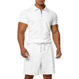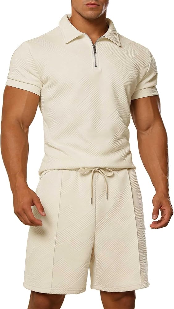 【قماش جاكار منسوج ثلاثي الأبعاد】 مصنوع من نسيج جاكار مخطط ثلاثي الأبعاد ممتاز، يوفر طقم قميص بولو والسراويل القصيرة تهوية فائقة وملمسًا متطورًا. تحافظ المادة الماصة للرطوبة على جفافك وبرودتك، وتتفوق بكثير على الأقمشة المسطحة القياسية في حرارة الصيف.