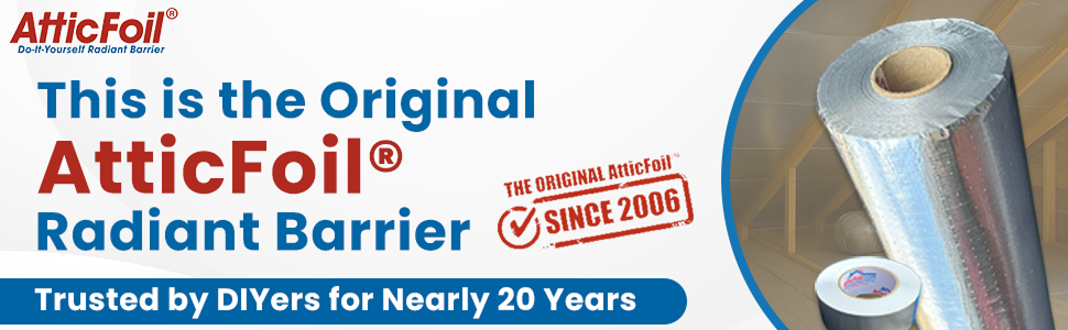 • AtticFoil - رقائق الحاجز المشع الأصلية التي يمكنك صنعها بنفسك! أكثر من 20 عامًا من العملاء السعداء. مقاوم للتمزق، جودة تجارية - جاهز للتركيب. خفض درجات حرارة العلية إلى 30 درجة. شريط درزات AtticFoil مجاني متضمن. ستطلق المنتجات الأخرى على منتجها (Attic Foil)