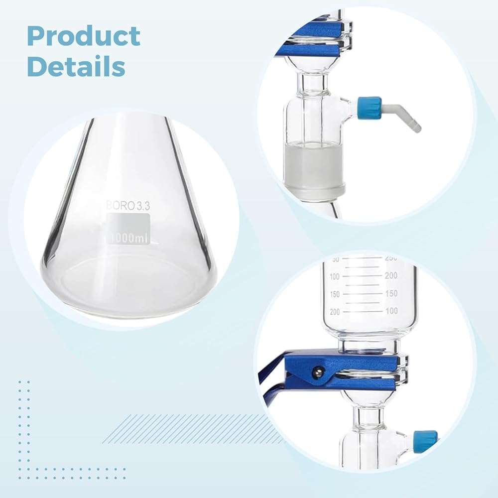 طقم ترشيح فراغي مع قمع زجاجي، جهاز ترشيح مذيب سعة 1000 مل مع غطاء غبار