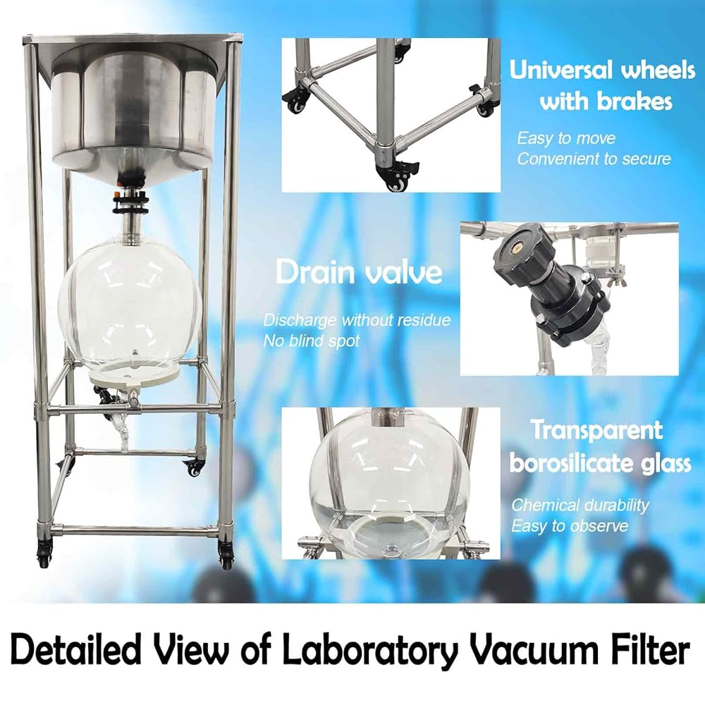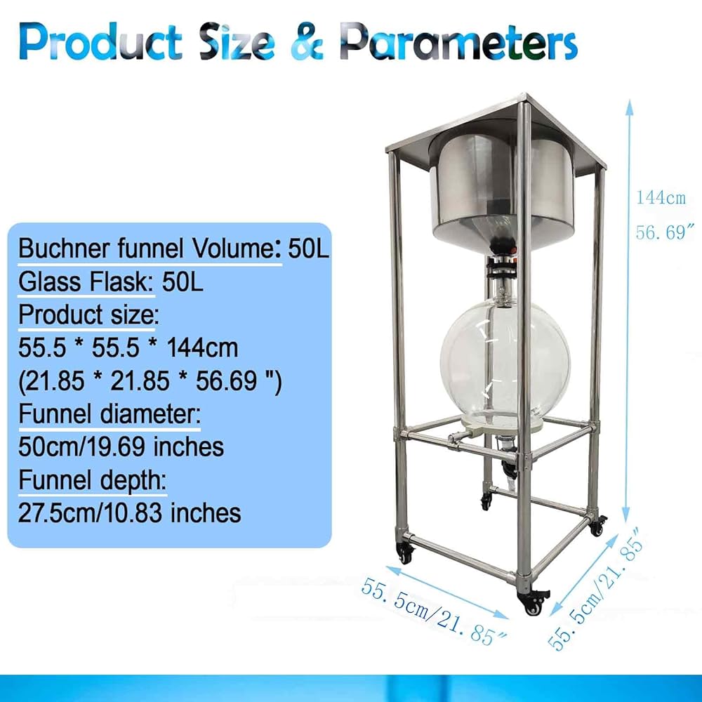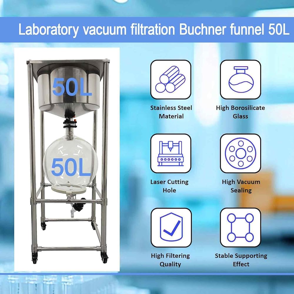 نظام مرشح قمع بوخنر سعة 50 لتر، فلتر فراغ 0.098 ميجا باسكال مع صمام تفريغ، دورق زجاجي وإطار من الفولاذ المقاوم للصدأ، لاستخراج السائل السائل في المختبر، تفاعل درجة حرارة الغرفة
