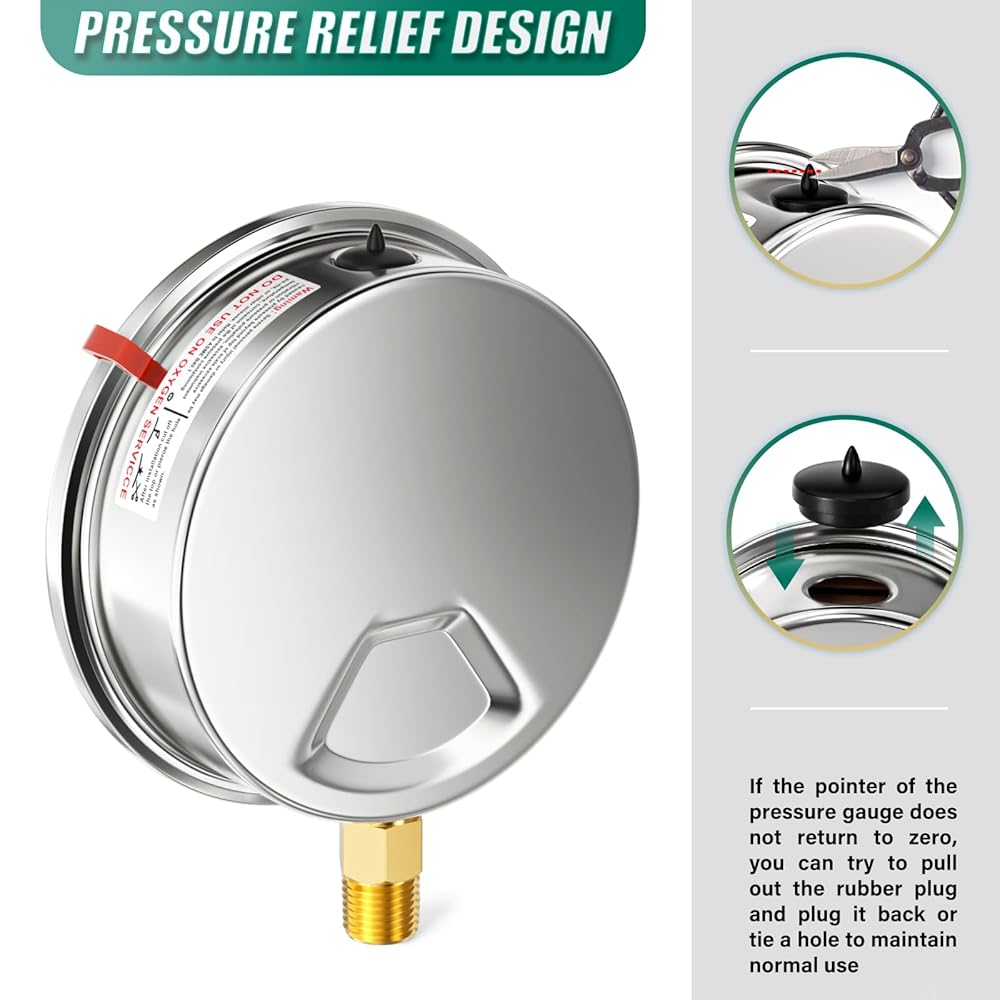 - نطاق الضغط: 0-160 رطل لكل بوصة مربعة، مع مؤشر علامة النطاق