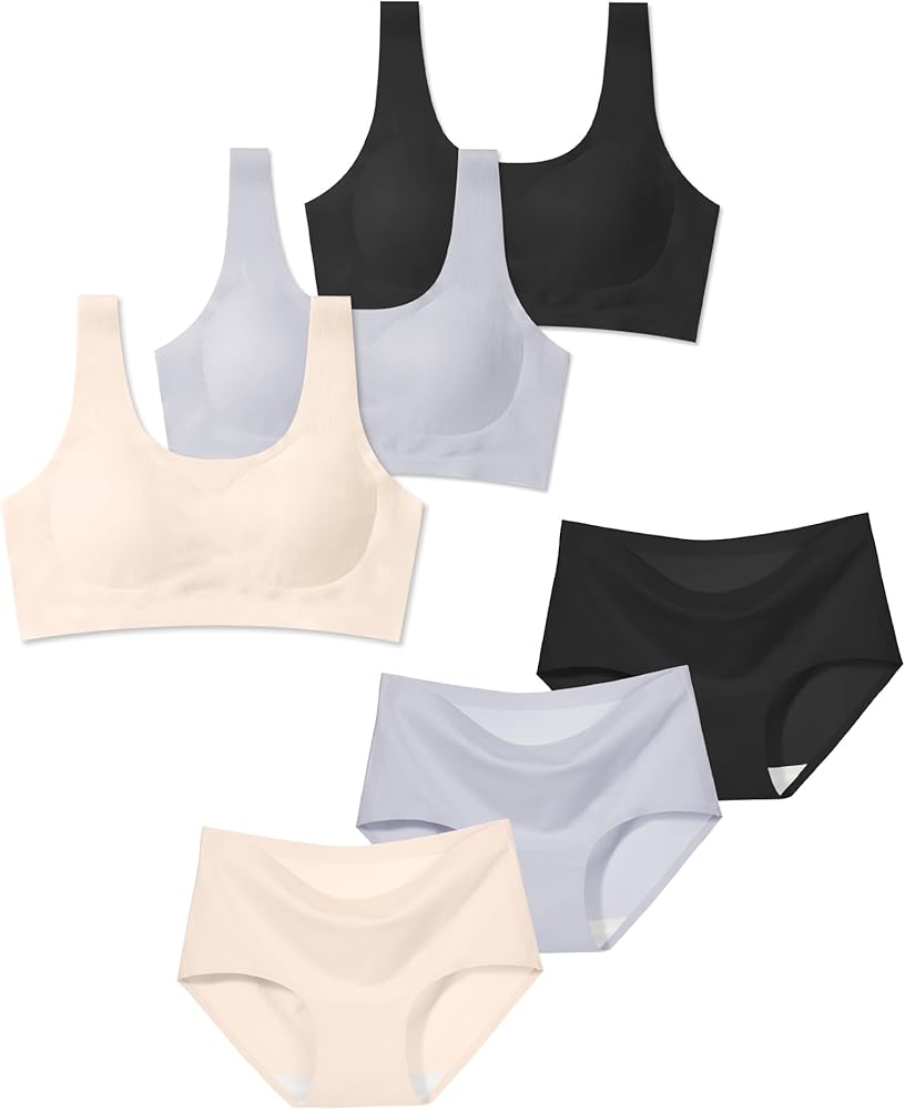 مجموعة بدون خياطة: تتميز حمالات الصدر التدريبية الخالية من الأسلاك بأنها ناعمة وحريرية وخفيفة الوزن، بالإضافة إلى سراويل داخلية ملائمة للمراهقين بدون خياطة لتوفير الراحة طوال اليوم. صُممت هذه المجموعة لتشعر بأنها بالكاد موجودة وتظل غير مرئية تحت الملابس، وهي مثالية للارتداء اليومي.