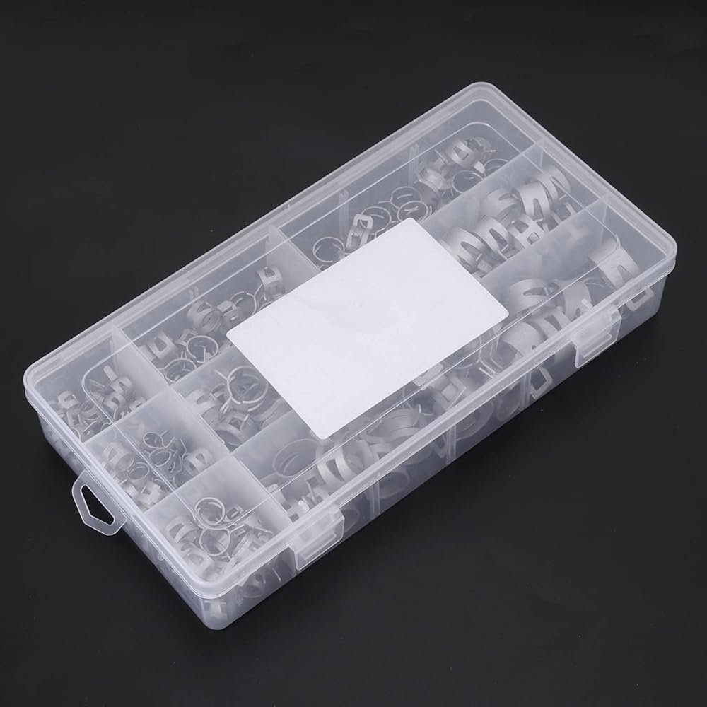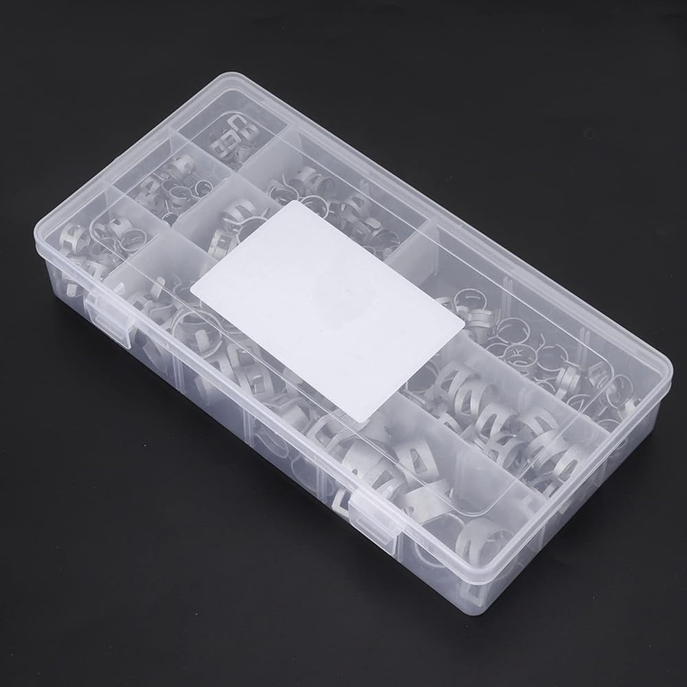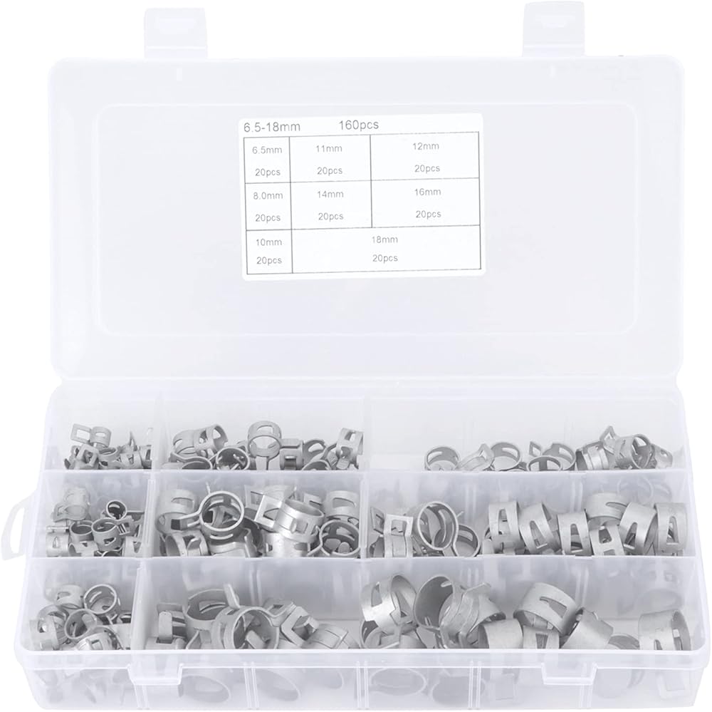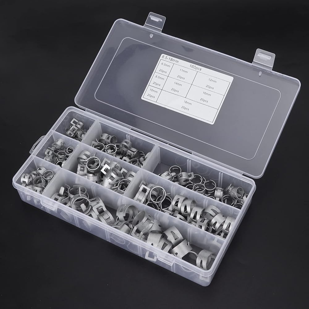 [MULTI SIZE OPTIONS] This comprehensive set includes clamps for hoses with outer diameters of 6.5mm 8mm 10mm 11mm 12mm 14mm 16mm and 18mm covering most standard sizes. The variety ensures you always have the right clamp for your specific project or repair needs.